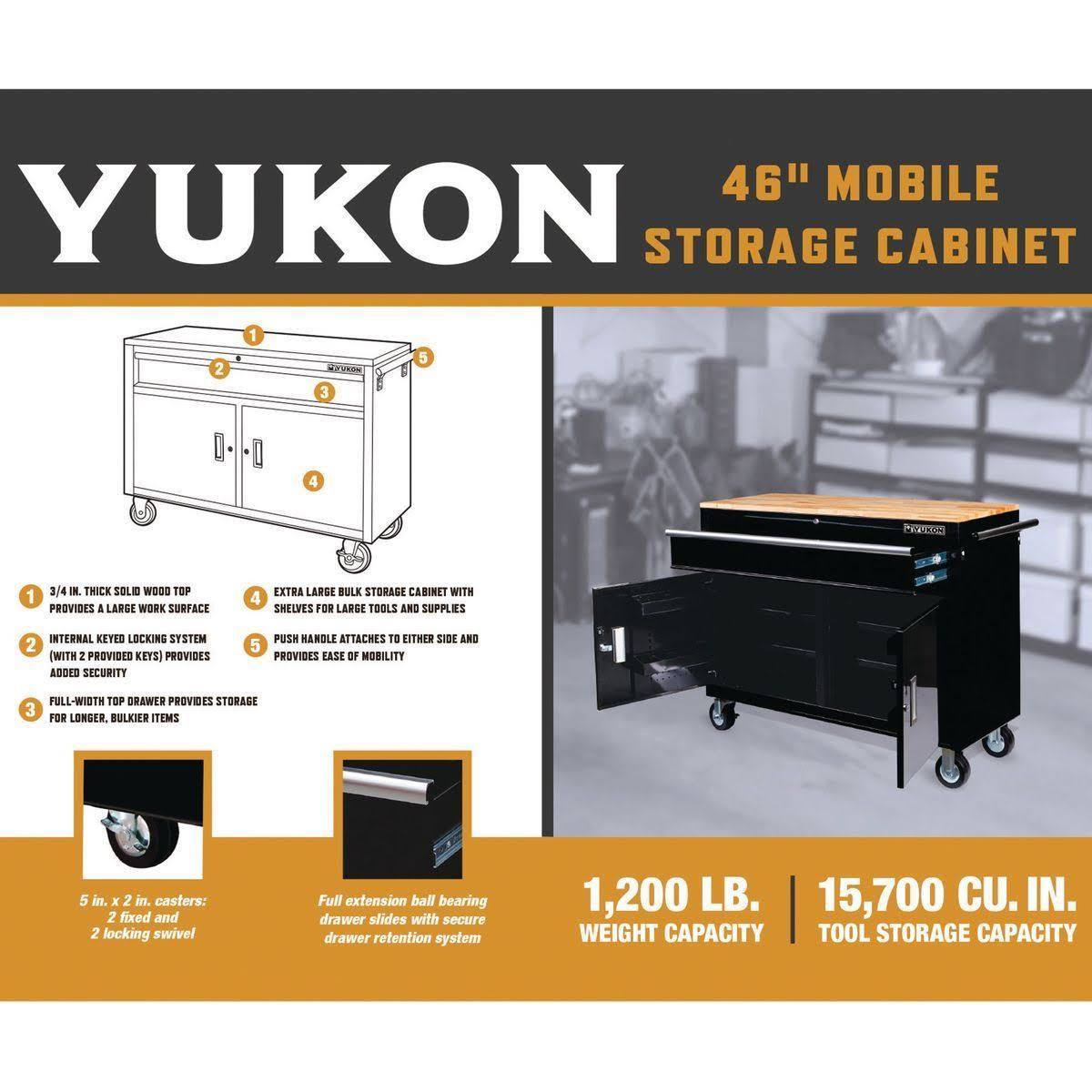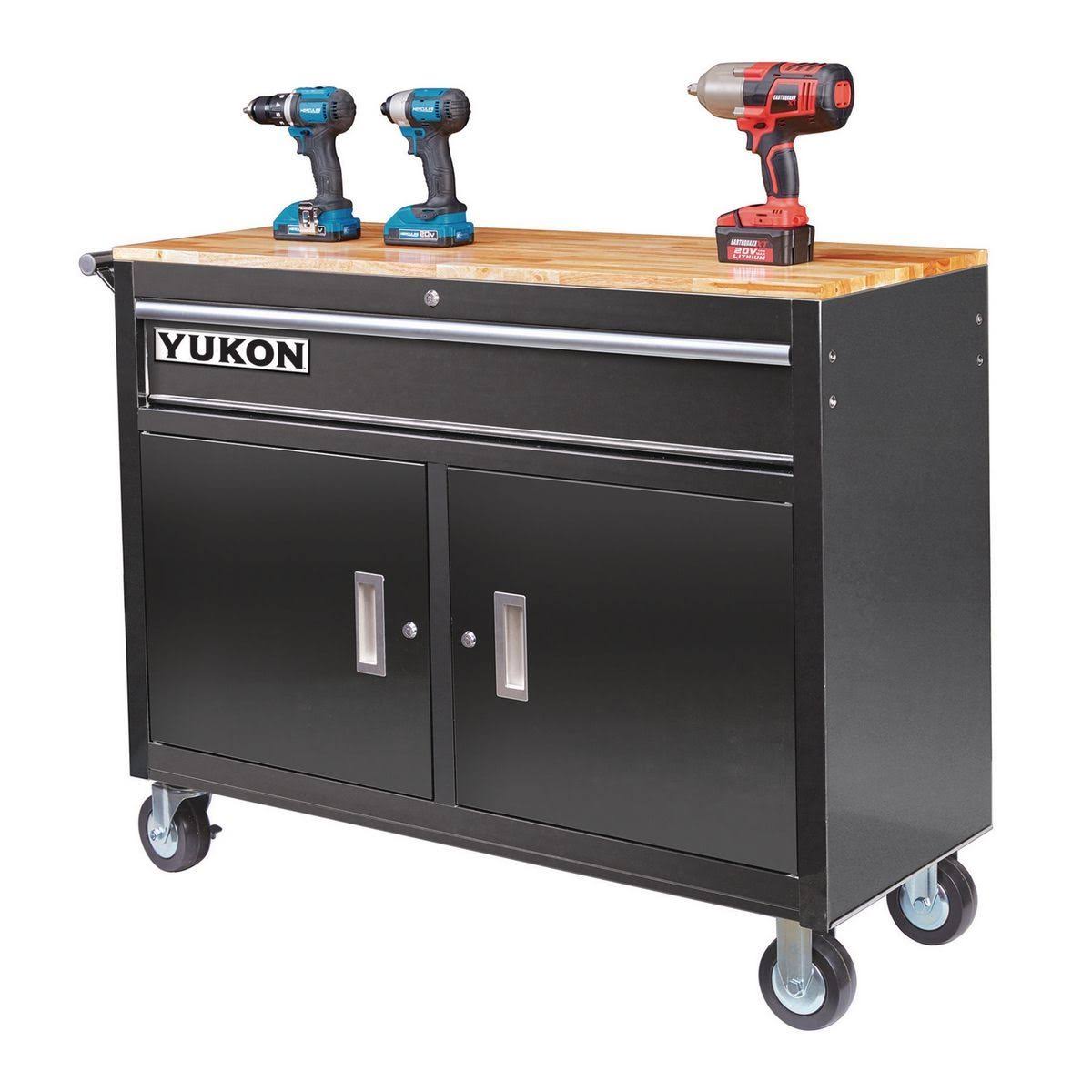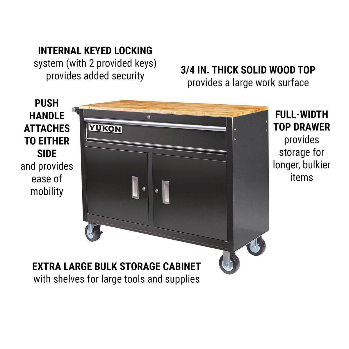 Yukon 46 in. Mobile Tool Storage Cabinet with Wood Top Workbench 64012