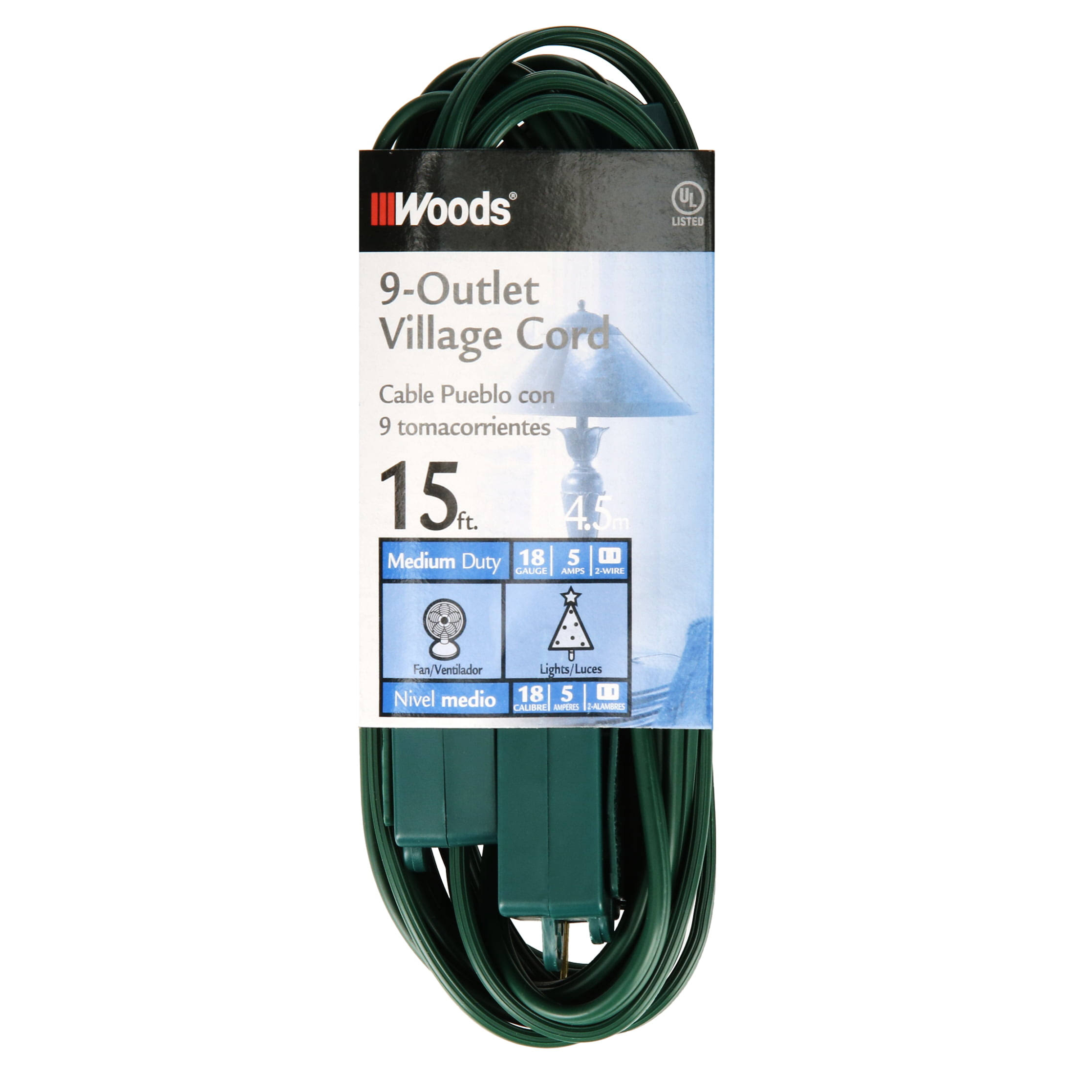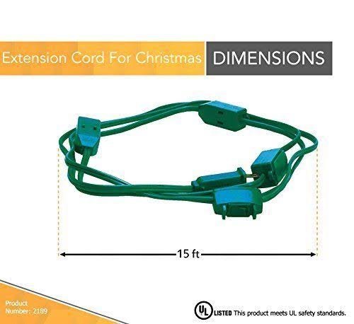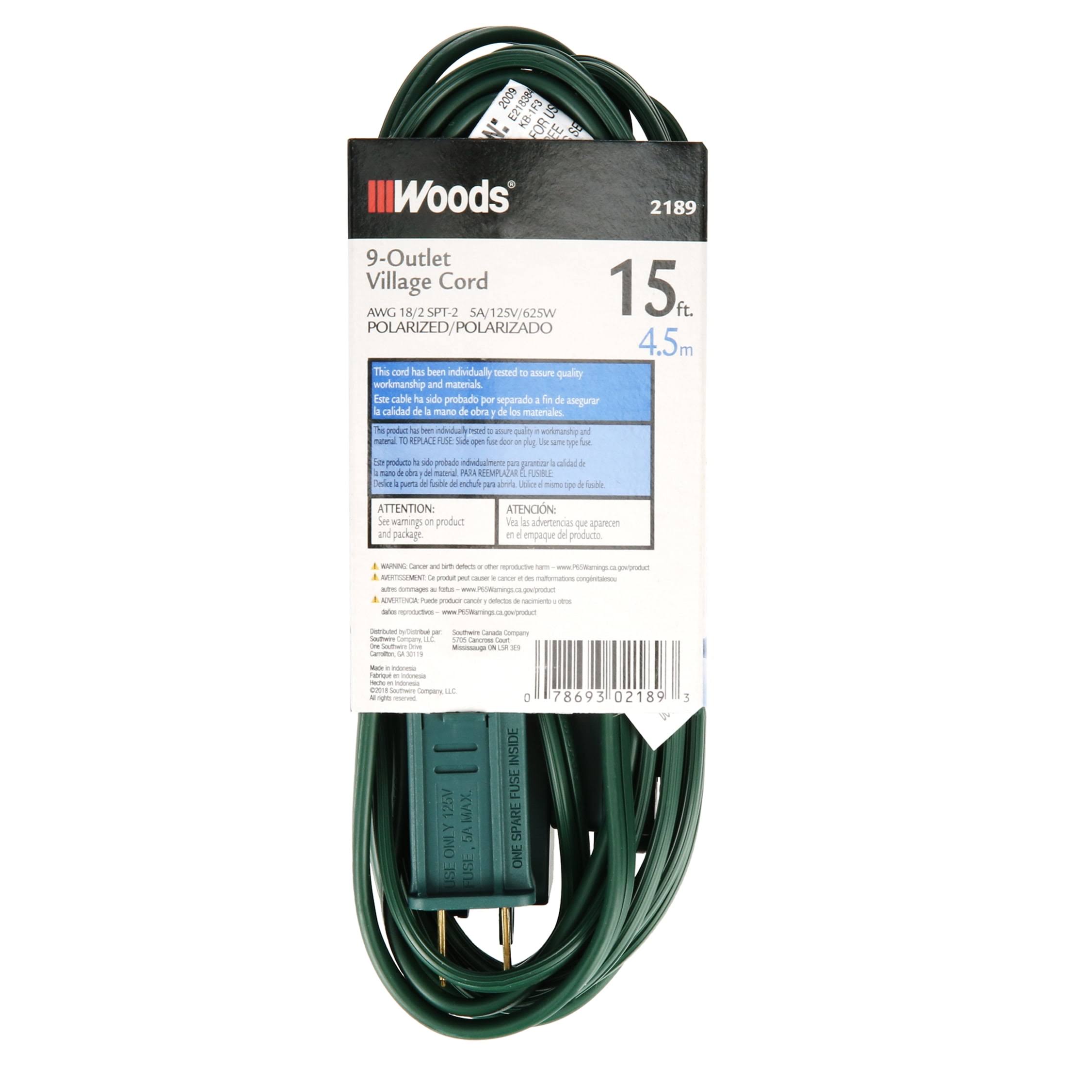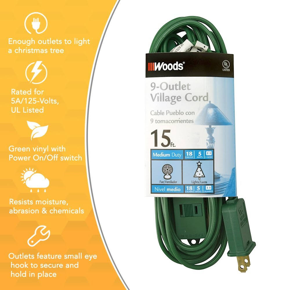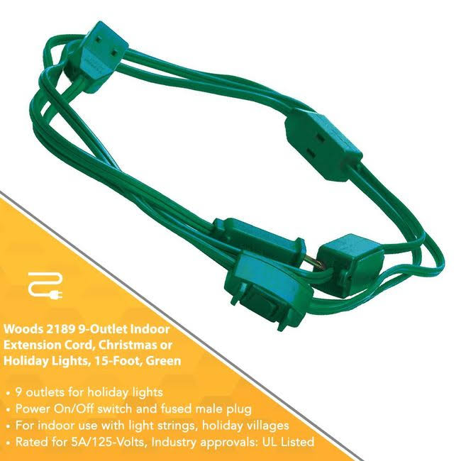 Woods 2189 15 Foot 9 Outlet Indoor Extension Cord, Christmas or Holiday Lights, Green