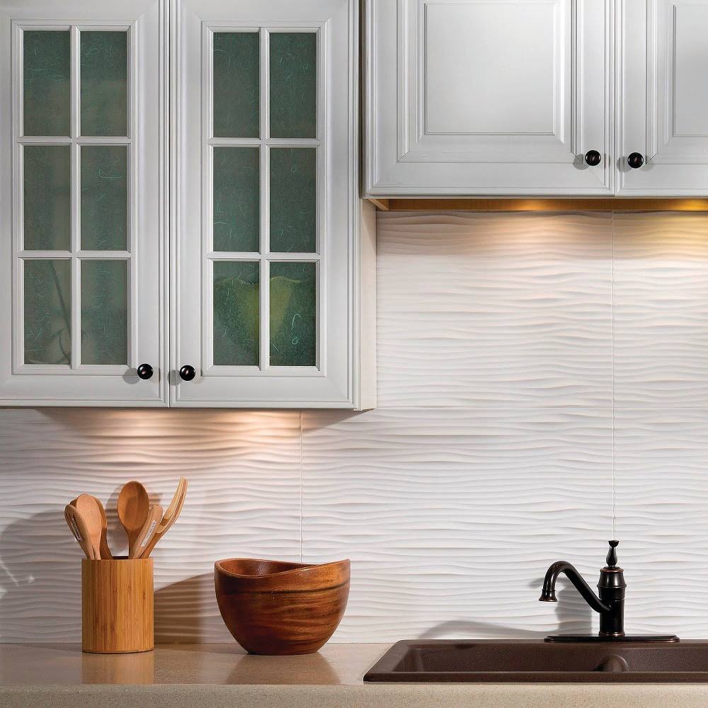 Fasade 18in x 24in Waves Matte White Backsplash Panel (5 Pack)