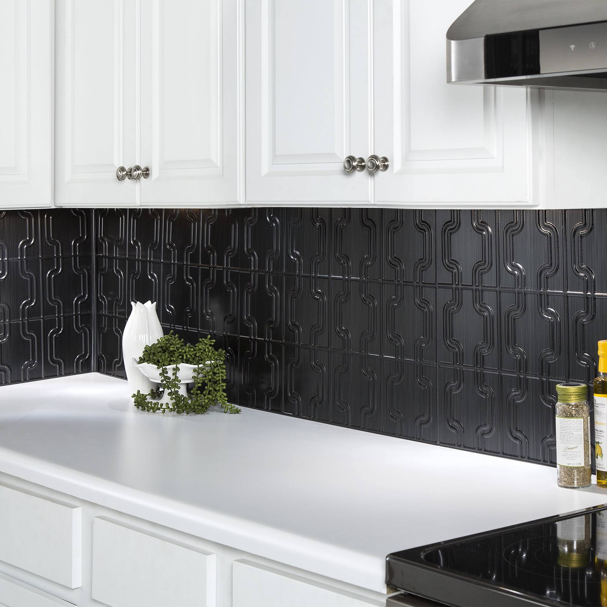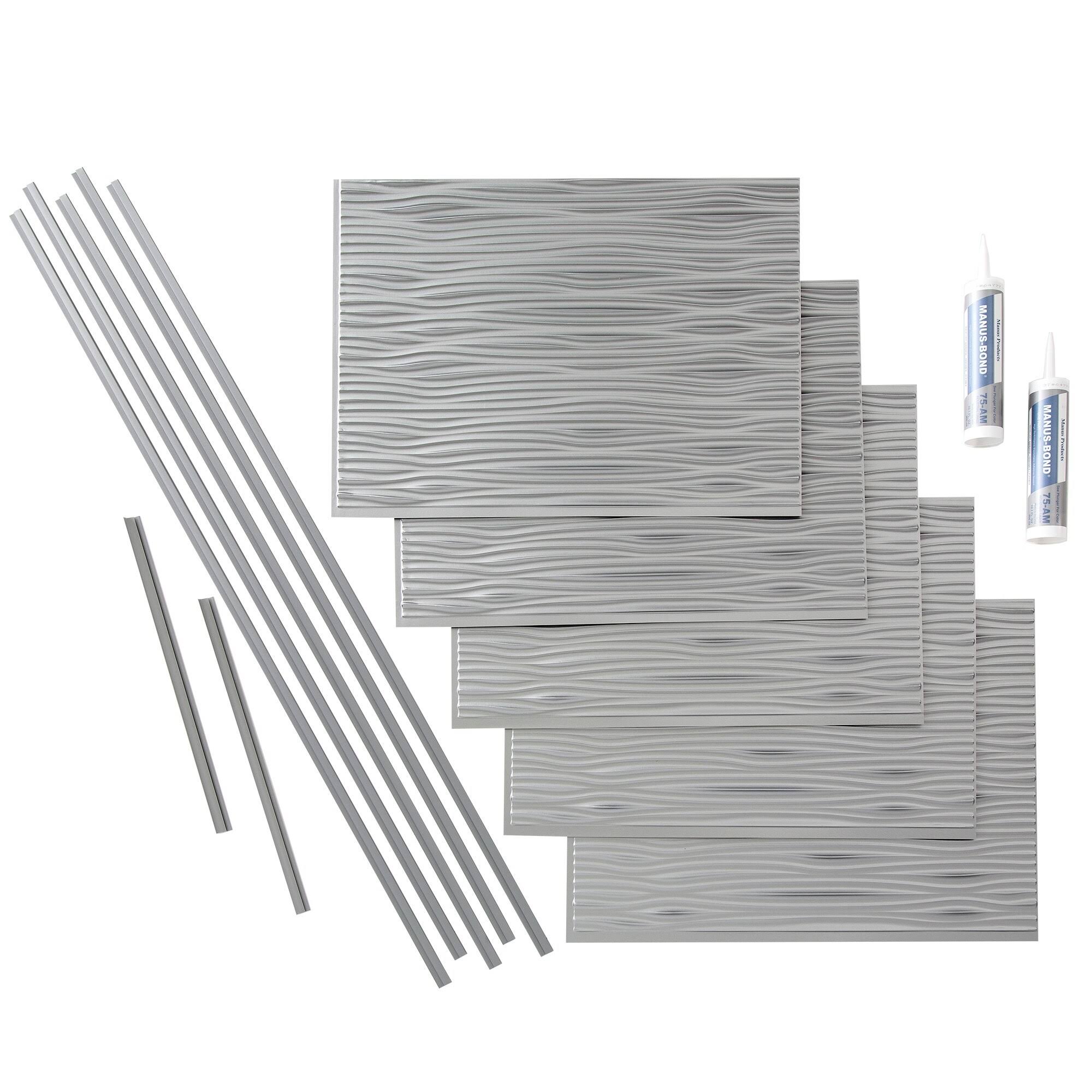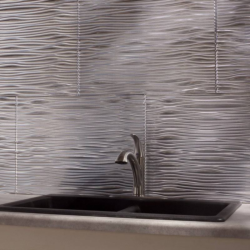 Fasade 18in x 24in Waves Brushed Aluminum Backsplash Panel (5 Pack)