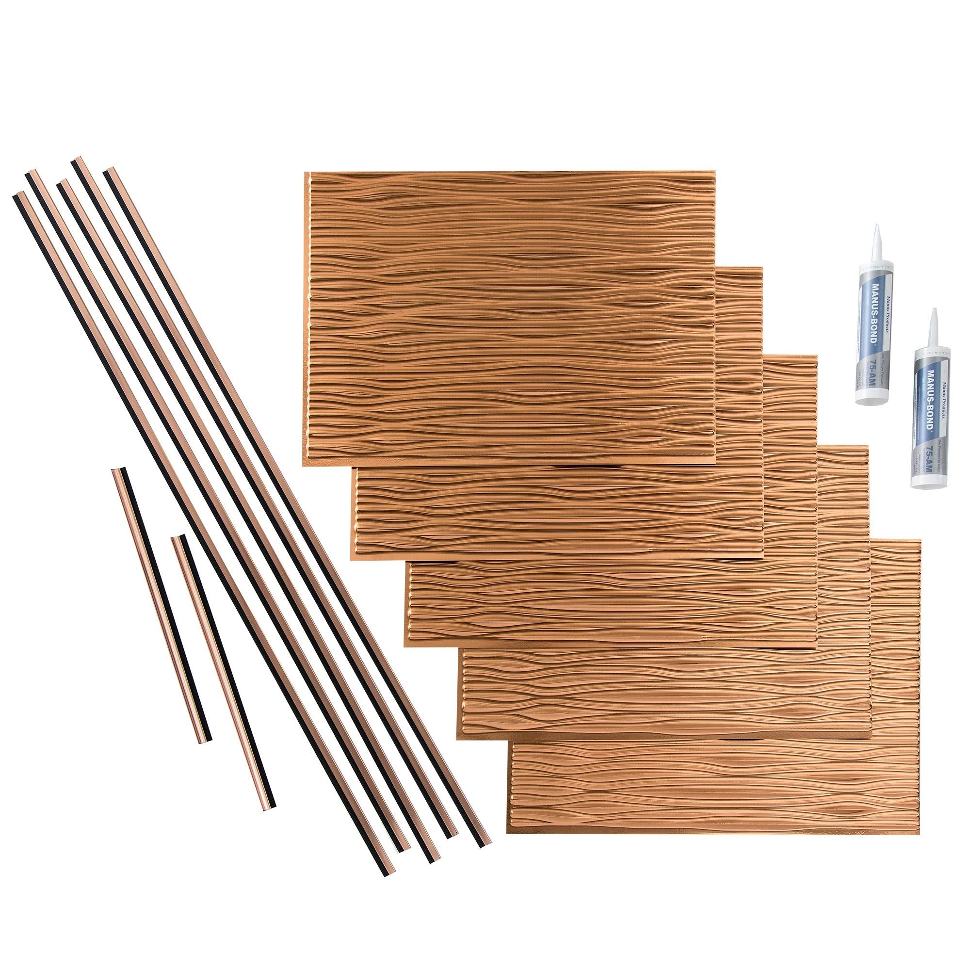 Fasade 18in x 24in Waves Polished Copper Backsplash Panel (5 Pack)