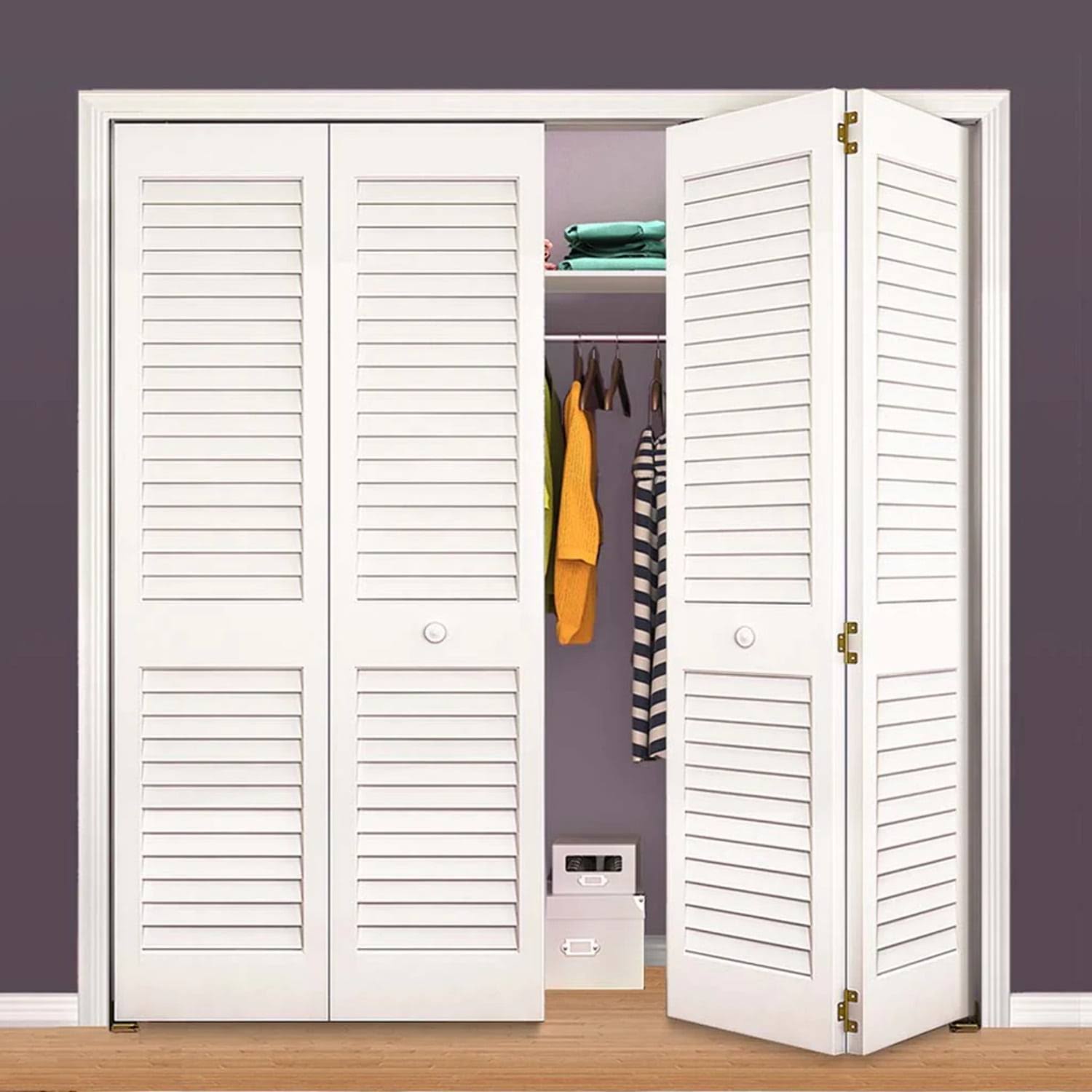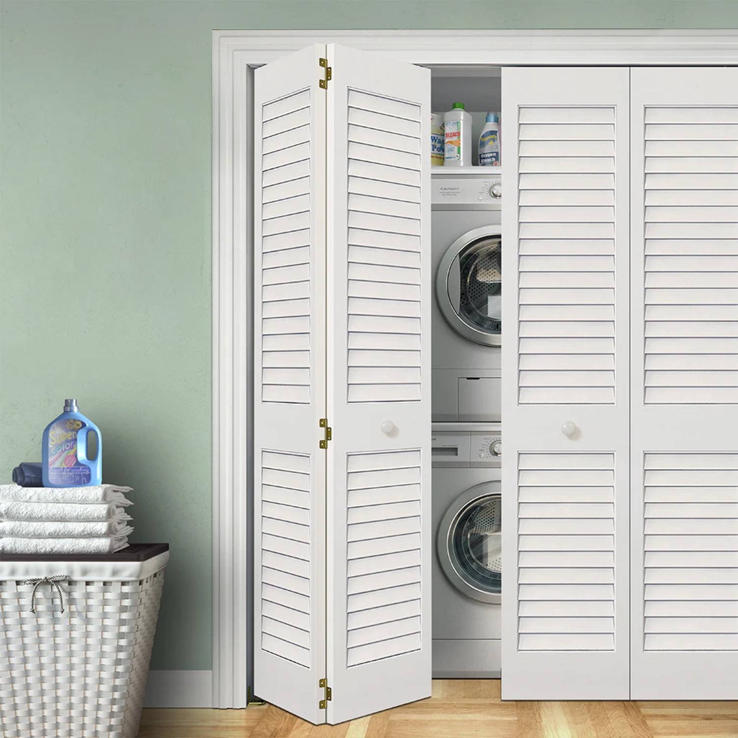 Kimberly Bay Louvered Pine Wood Painted Plantation Bi-Fold Door 1 in. x 32 in. x 80 in.