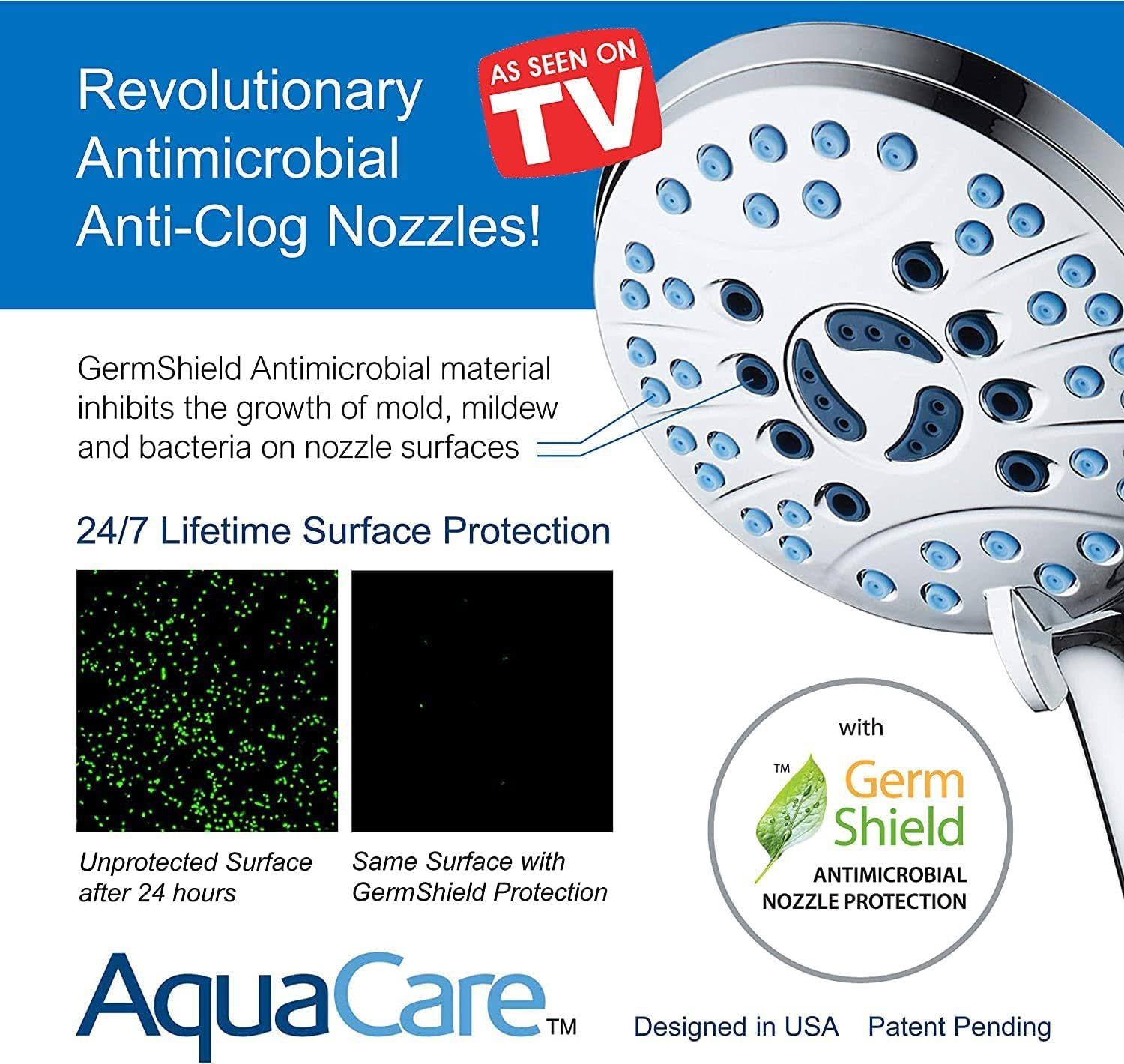 AquaCare As-seen-on-tv High Pressure 8-Mode Handheld Shower Head- Anti-Clog