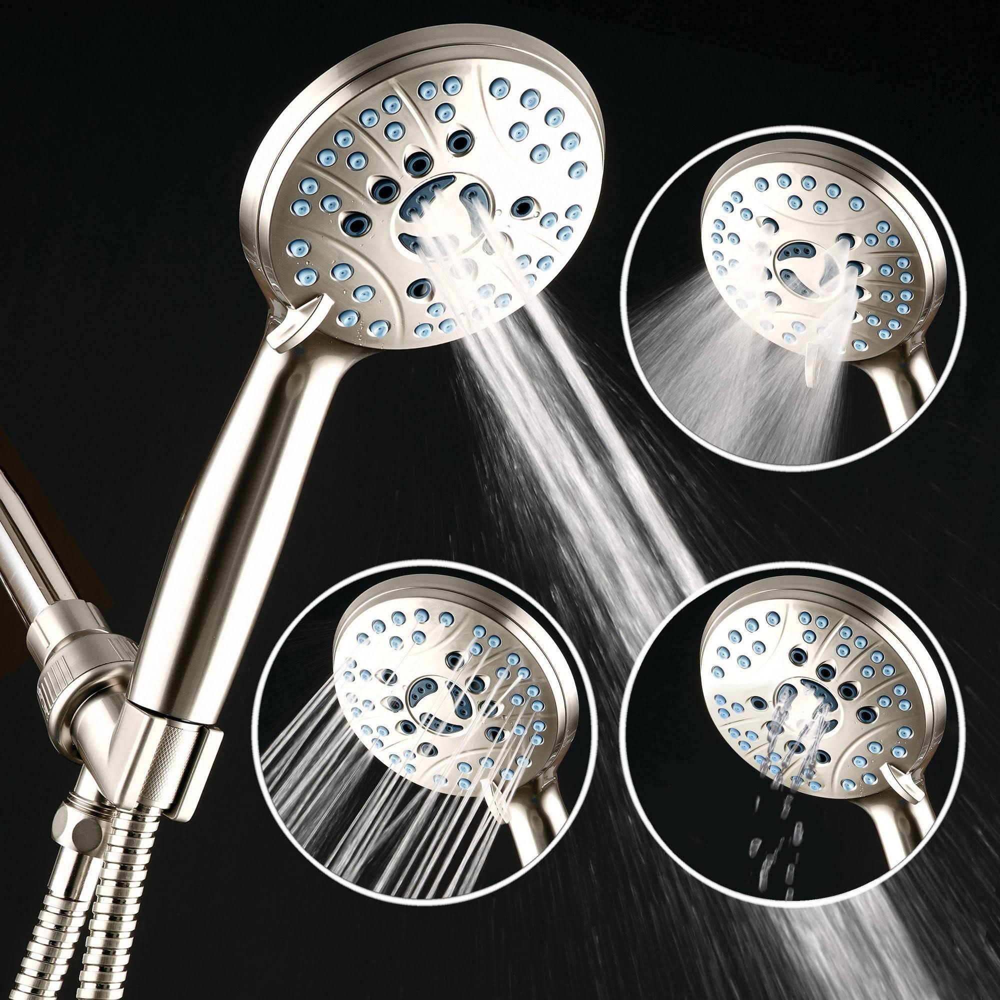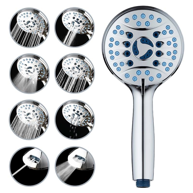 Hotel Spa AquaCare As-seen-on-tv High Pressure 8-Mode Handheld Shower Head- Anti-Clog Nozzles Built-in Power Wash to Clean Tub Tile & Pets Extra