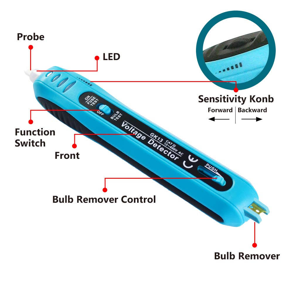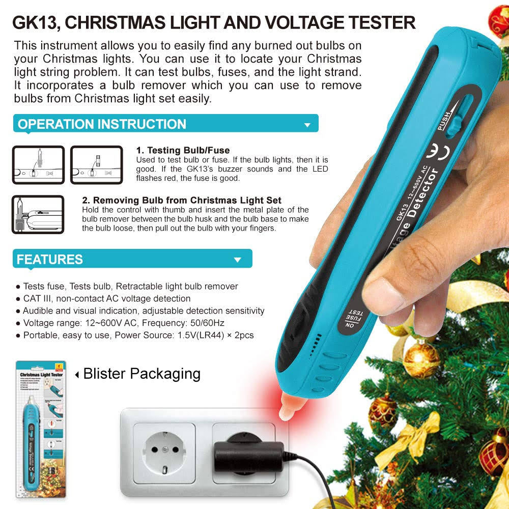 allsun Christmas Light Tester Non Contact Voltage Tester Light Bulb&Fuse Detector 12-600 V AC Voltage Detector Christmas Light Fuse Checker Light