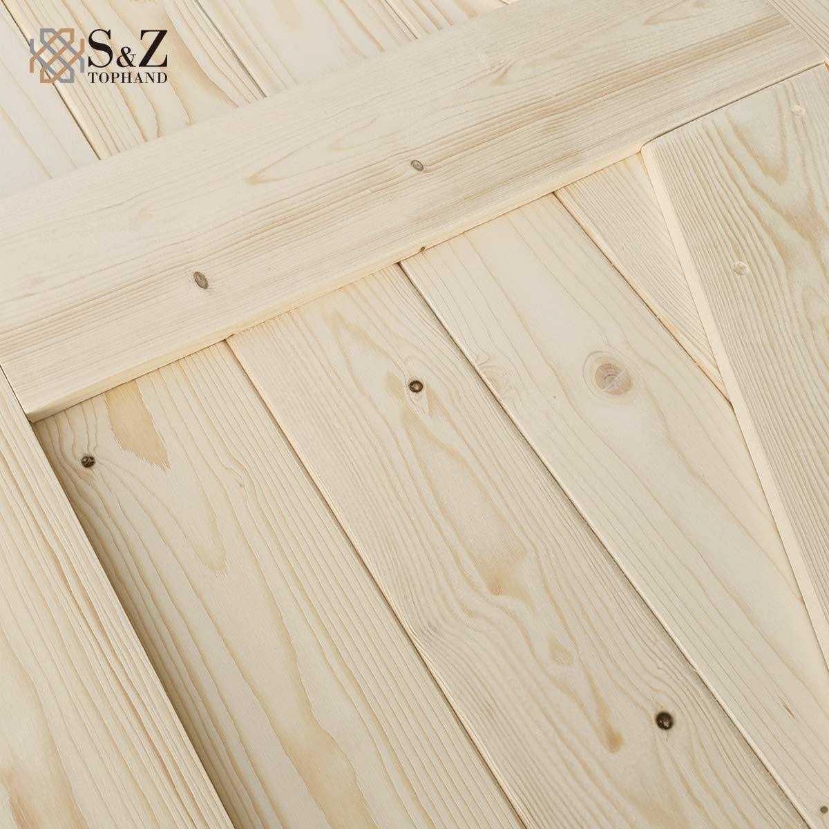 S&Z TOPHAND 24 in. x 84 in. Double Unfinished British Brace Knotty Barn Door with 8ft Sliding Door Hardware Kit/Solid Wood/Sliding Door/Double