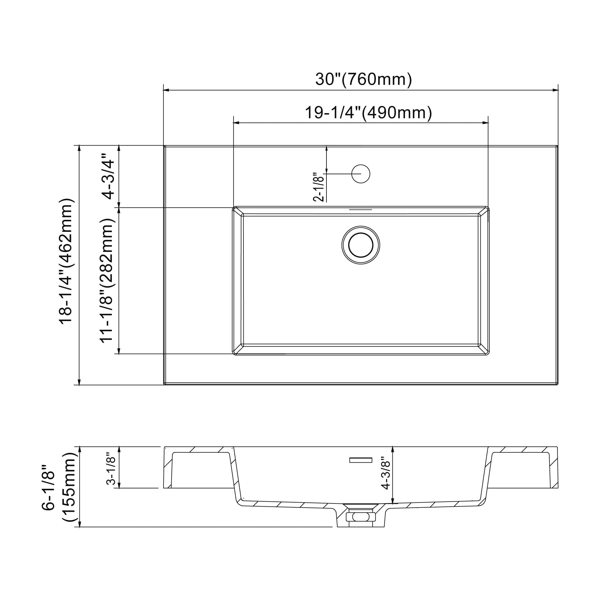 Dowell 18" FTB Resin Bathroom Vanity Basin- 30Wx18Dx6H- White