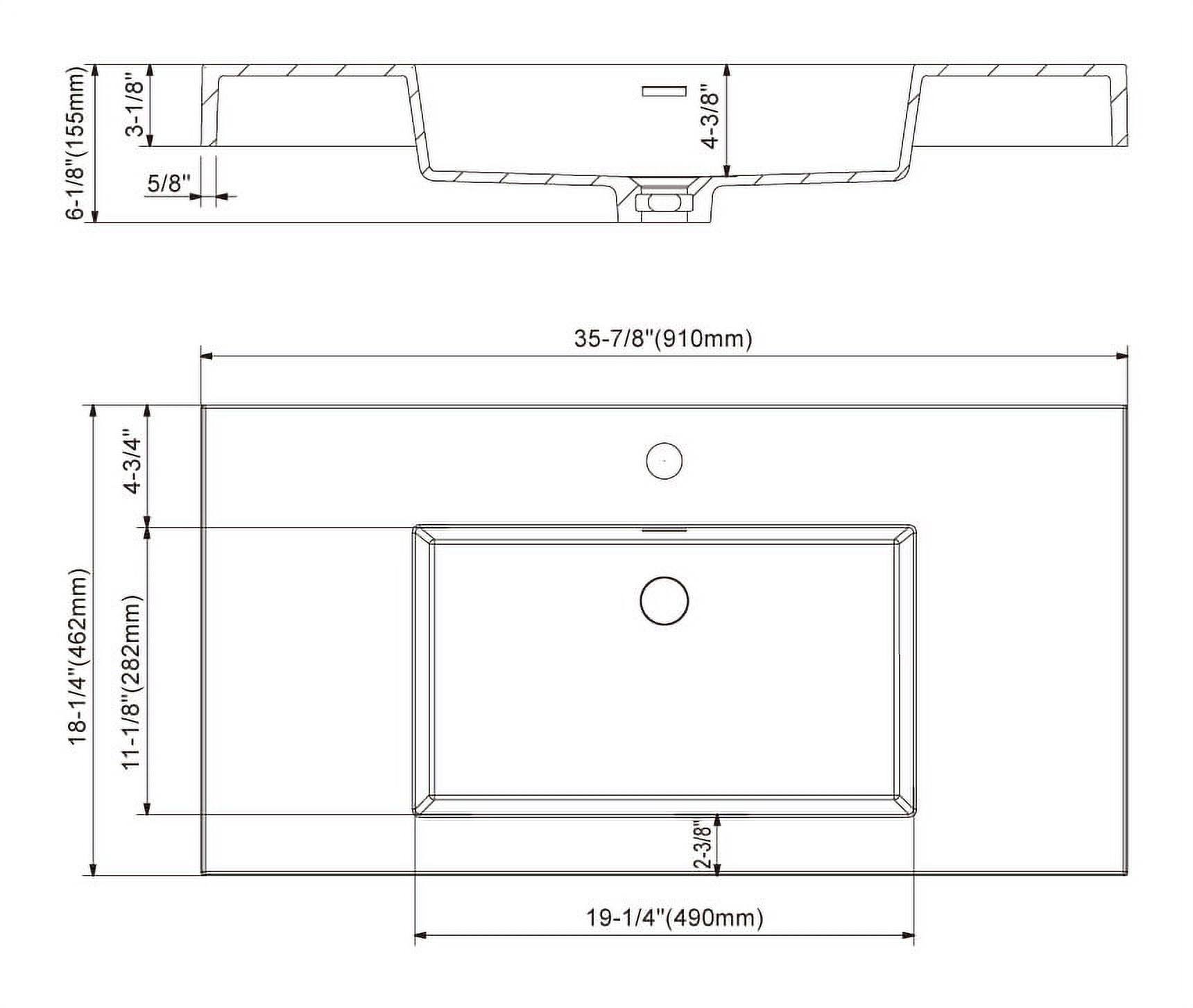 Dowell 18" FTB Resin Bathroom Vanity Basin- 36Wx18Dx6H- White