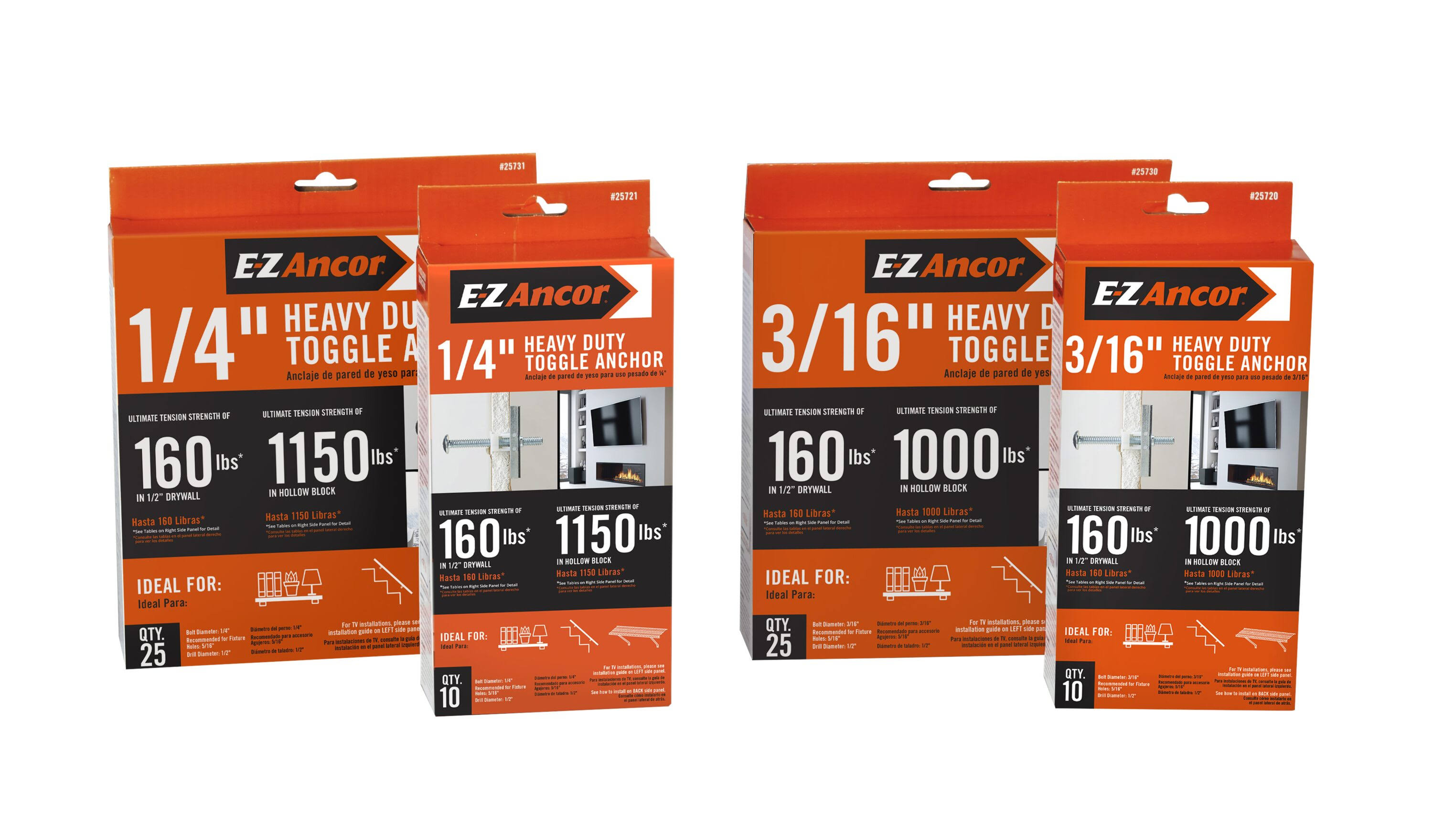 E-Z Ancor 25721 1/4-in Dia Toggle Bolt Drywall Anchor, 10-Pack (Screws Included)