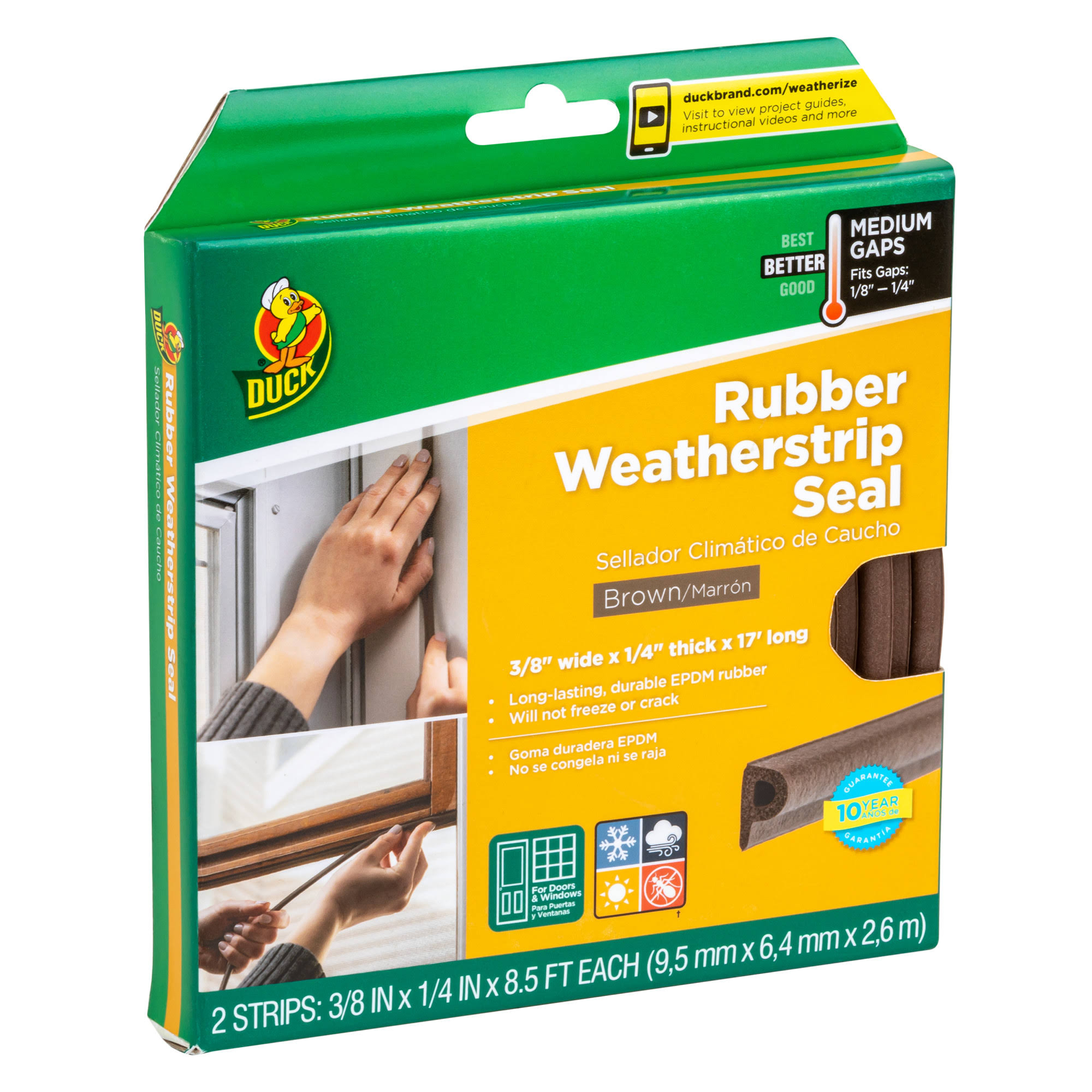 Duck Brand Heavy-Duty Rubber .38" x .25" x 17' Medium Gap Weatherstrip Seal Brown