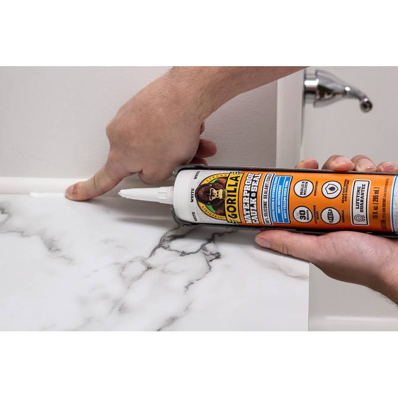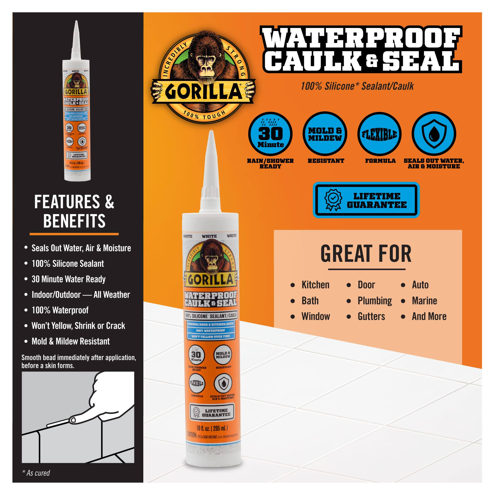 Gorilla Waterproof Caulk & Seal 100% Silicone Sealant, 10oz Cartridge, White (Pack of 2)