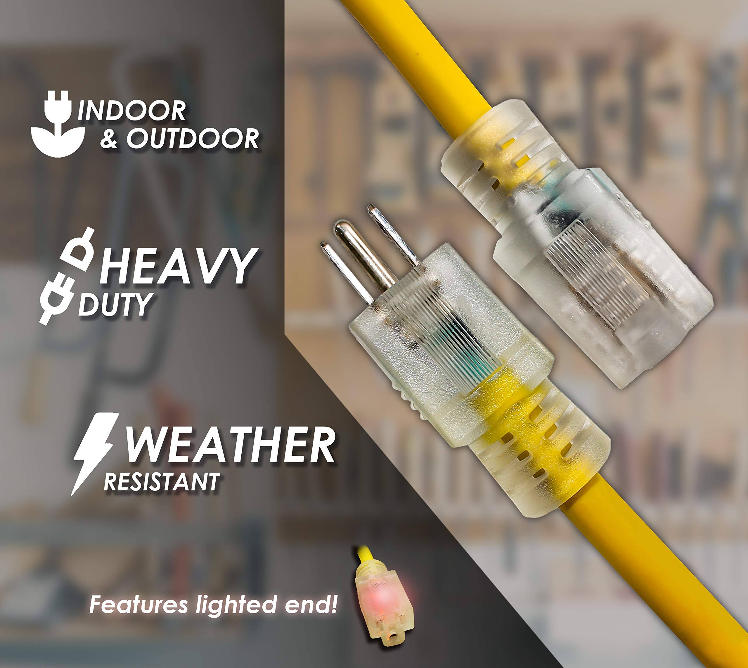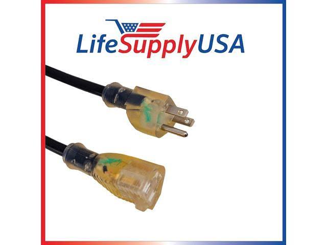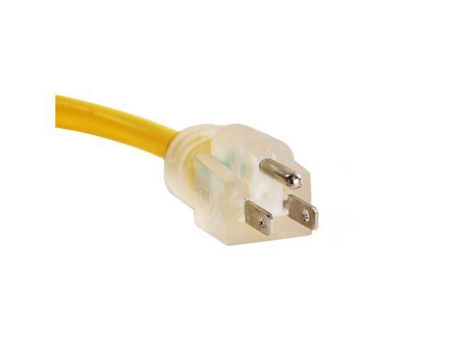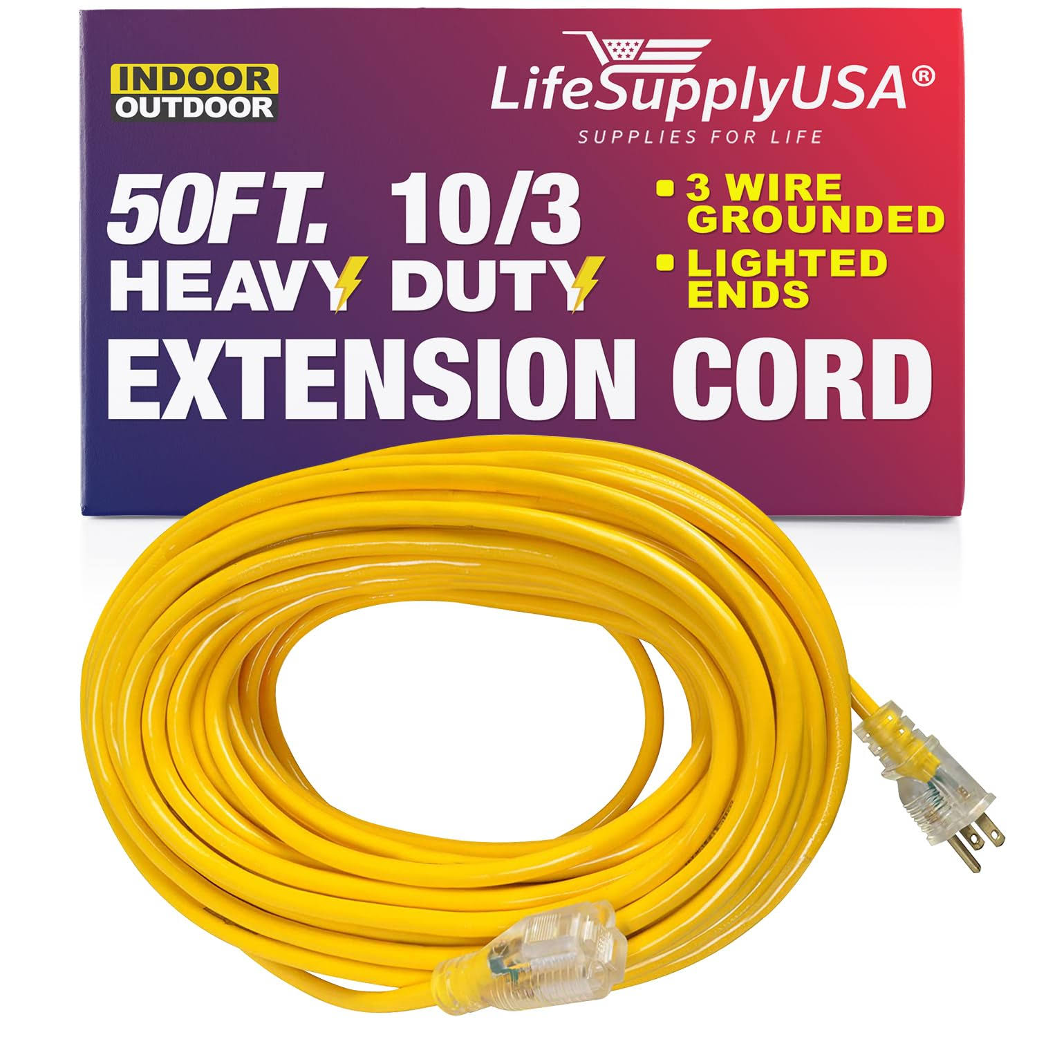 LifeSupplyUSA 50 ft. 10/3 SJTW 15 Amp 125-Volt 1875-Watt Lighted End Outdoor Super Heavy-Duty Jacket Extension Cord, Yellow