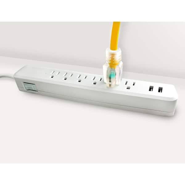 6 ft. 14/3 SJTW Full Copper 15 Amp 125-Volt 1625-Watt Lighted End Indoor/Outdoor Extension Cord (2-Pack)