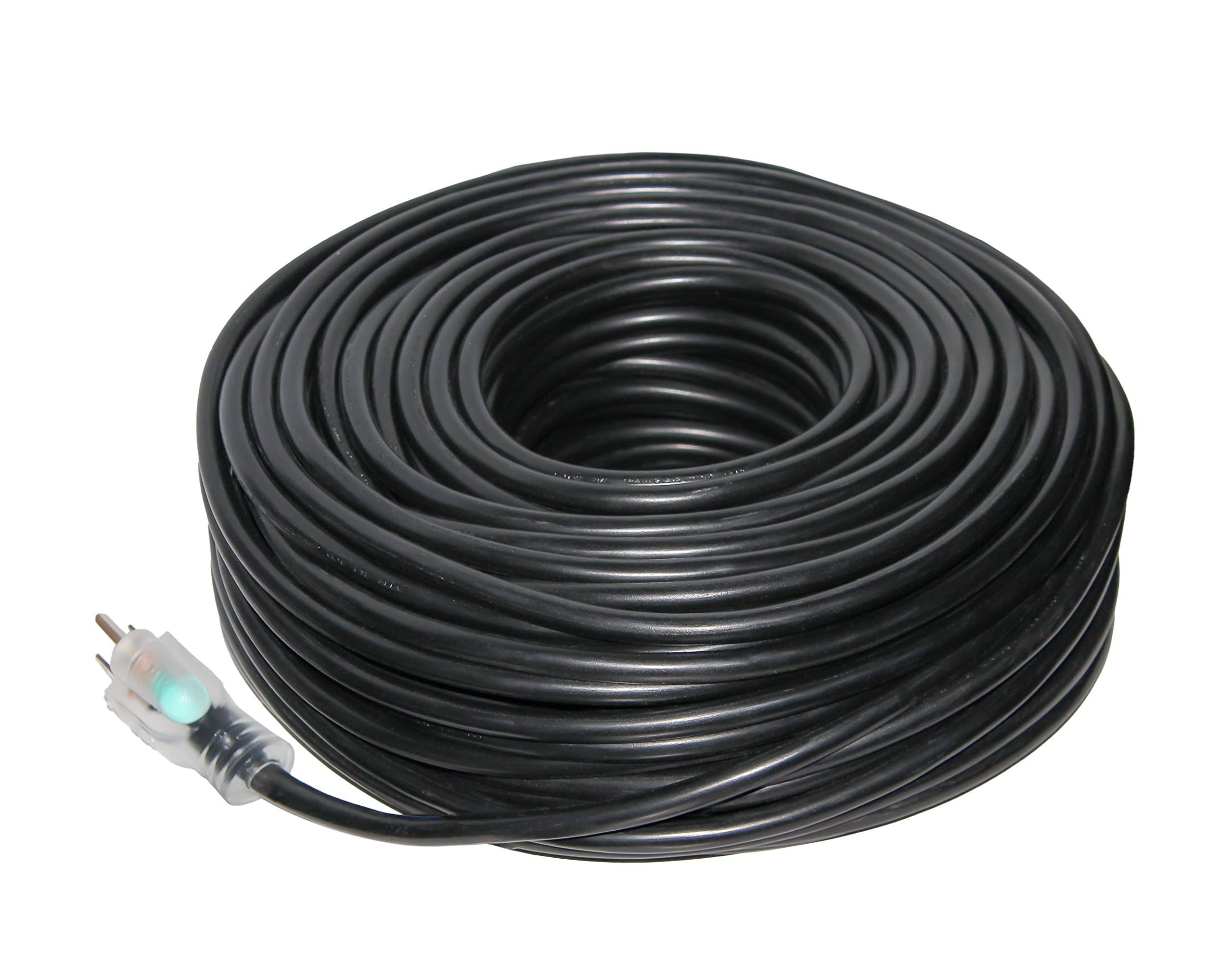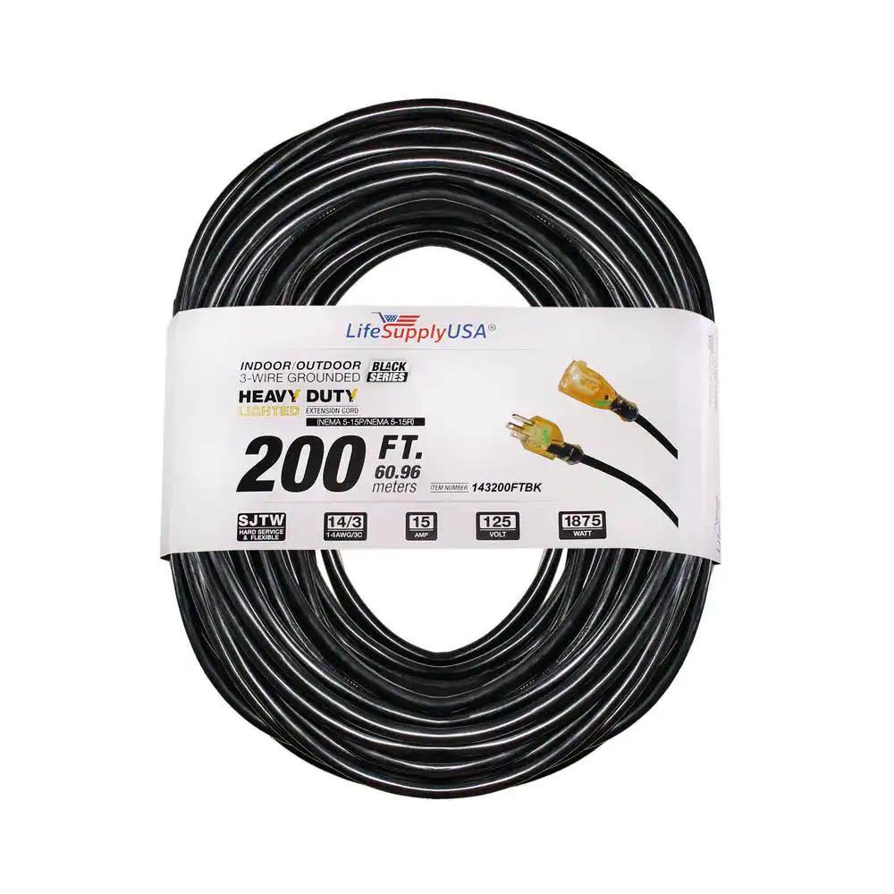 LifeSupplyUSA 200 ft. 14/3 SJTW 7 Amp 125-Volt 875-Watt Lighted End Indoor/Outdoor Black Heavy-Duty Extension Cord