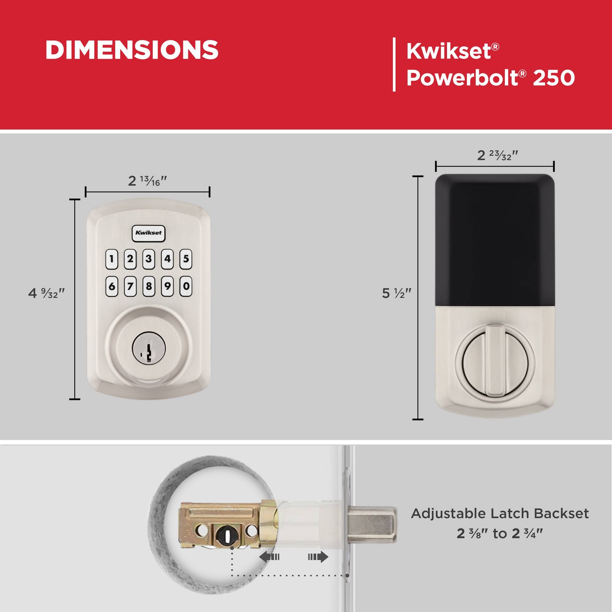 Kwikset Powerbolt 250 10-Button Keypad Electronic Deadbolt Door Lock, Satin Nickel