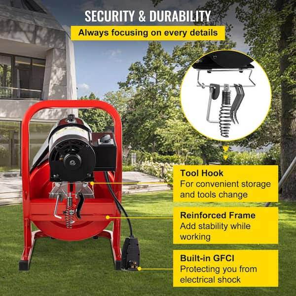 VEVOR Electric Drain Auger 75 ft. x 1/2 in. Drain Cleaner Machine 370W with Cutters Glove Sewer Snake Fit 1 in. to 4 in. Pipe