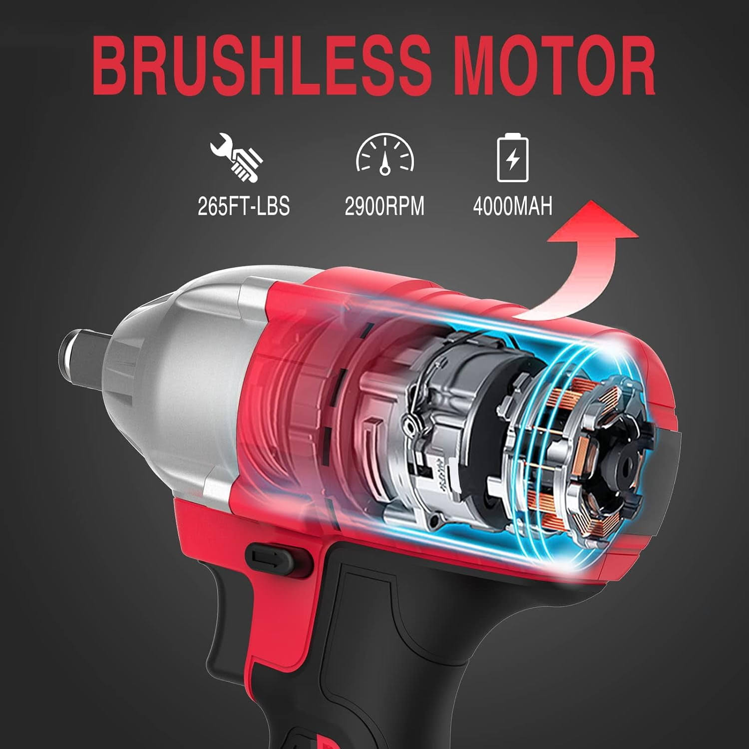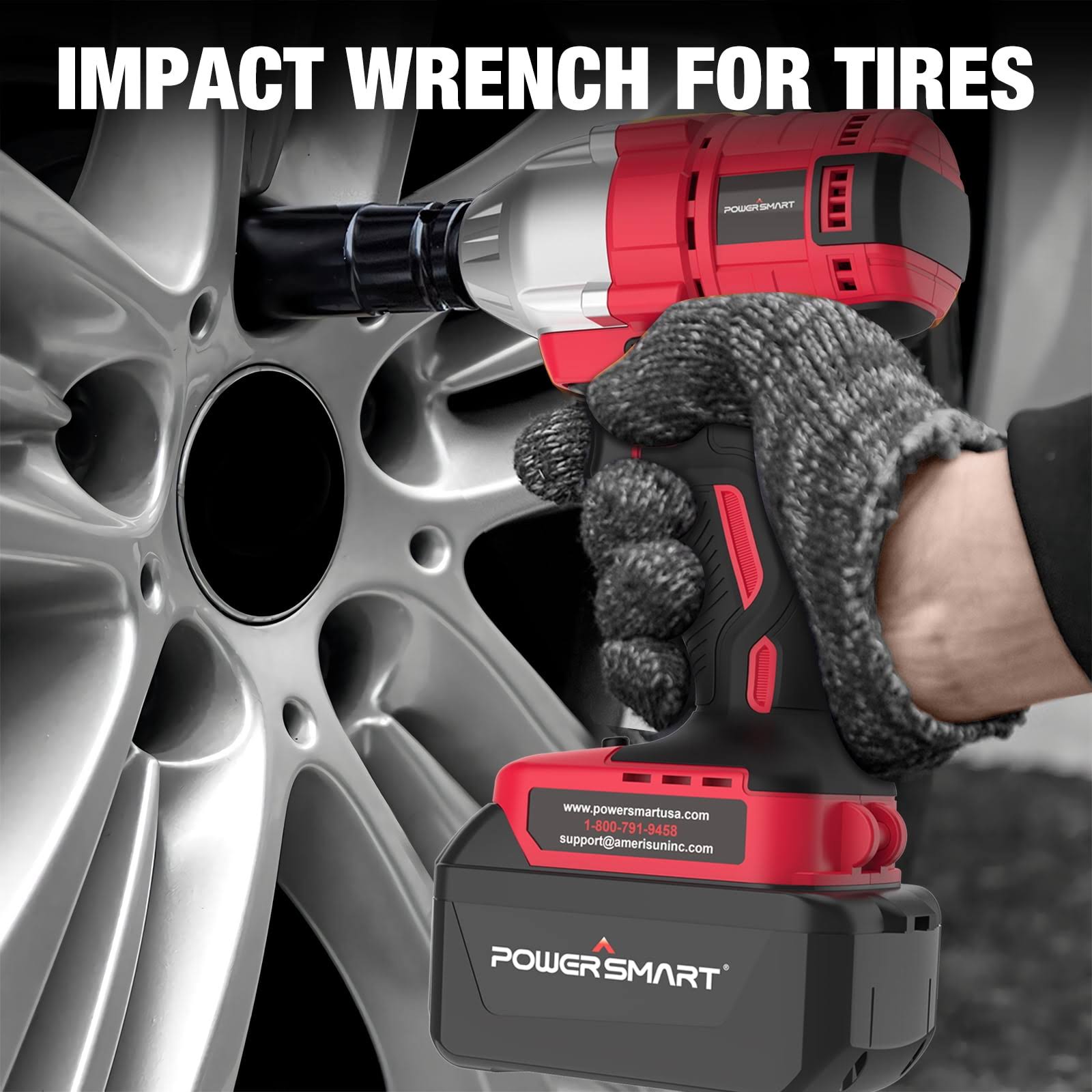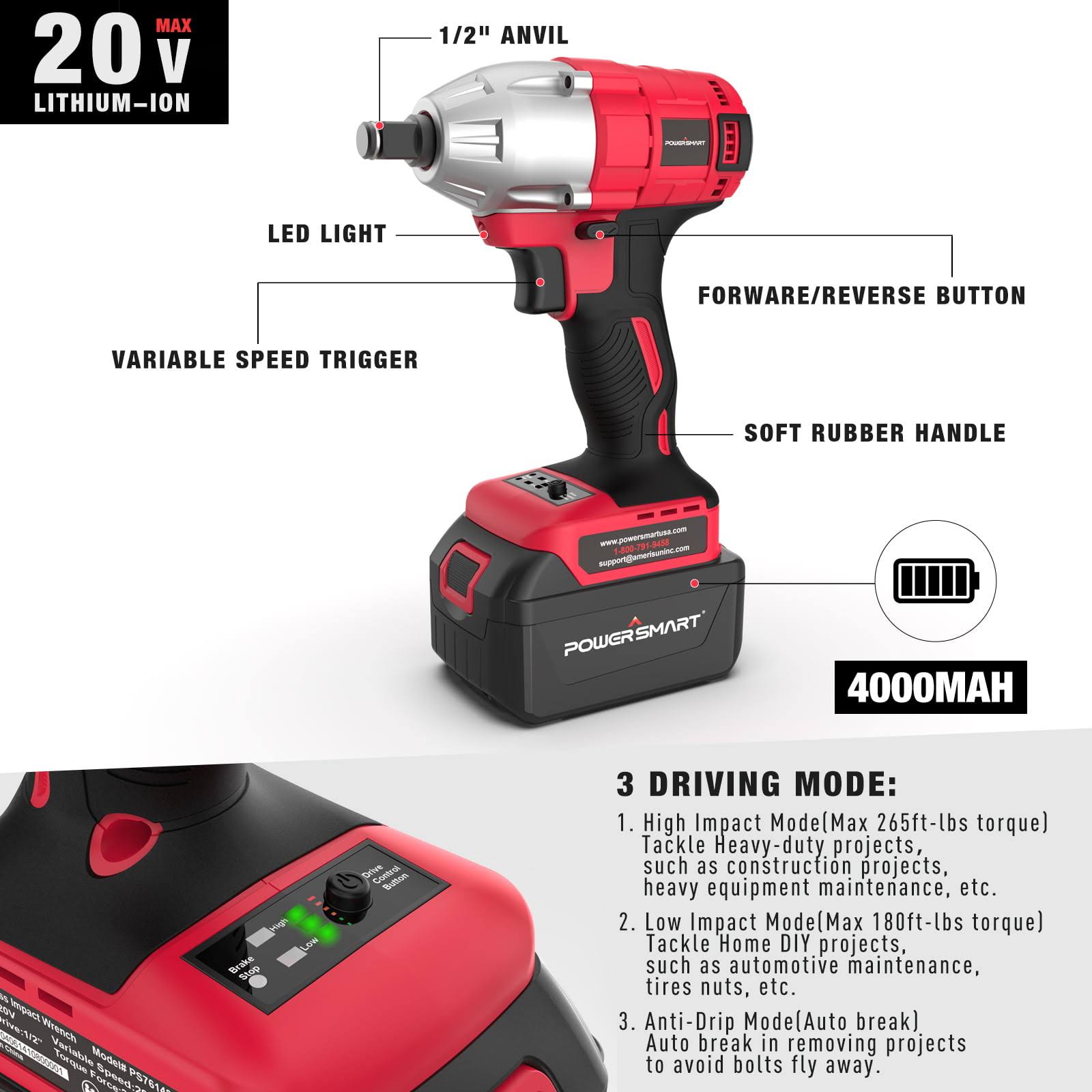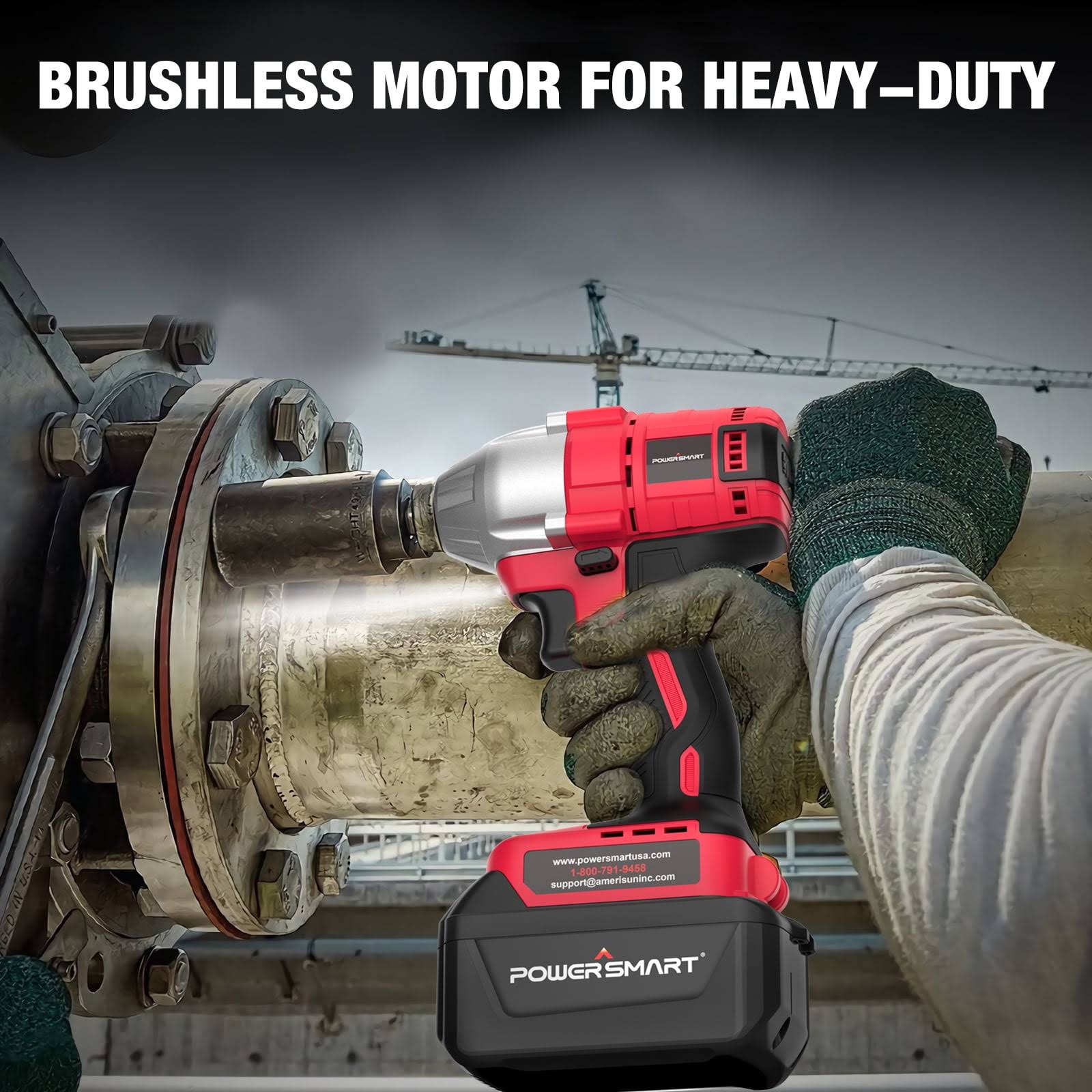 Powersmart Brushless Cordless Impact Wrench 1/2 in. with Friction Ring, 2.0Ah 20V Battery and Fast Charger, Power Bits/Nut Drivers/Sockets Set