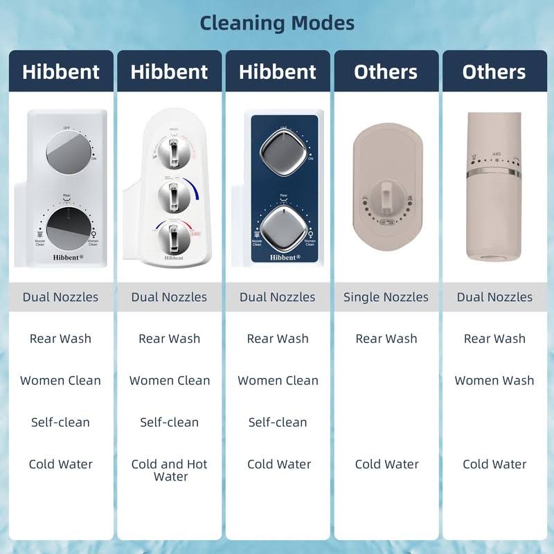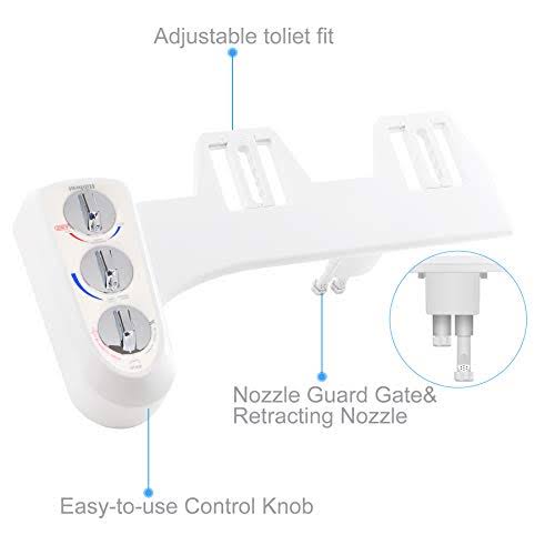 Hibbent Toilet Seat Bidet with Self Cleaning Dual Nozzle, Hot and Cold Water Spray Non-Electric Mechanical Bidet Toilet Attachment for Rear or