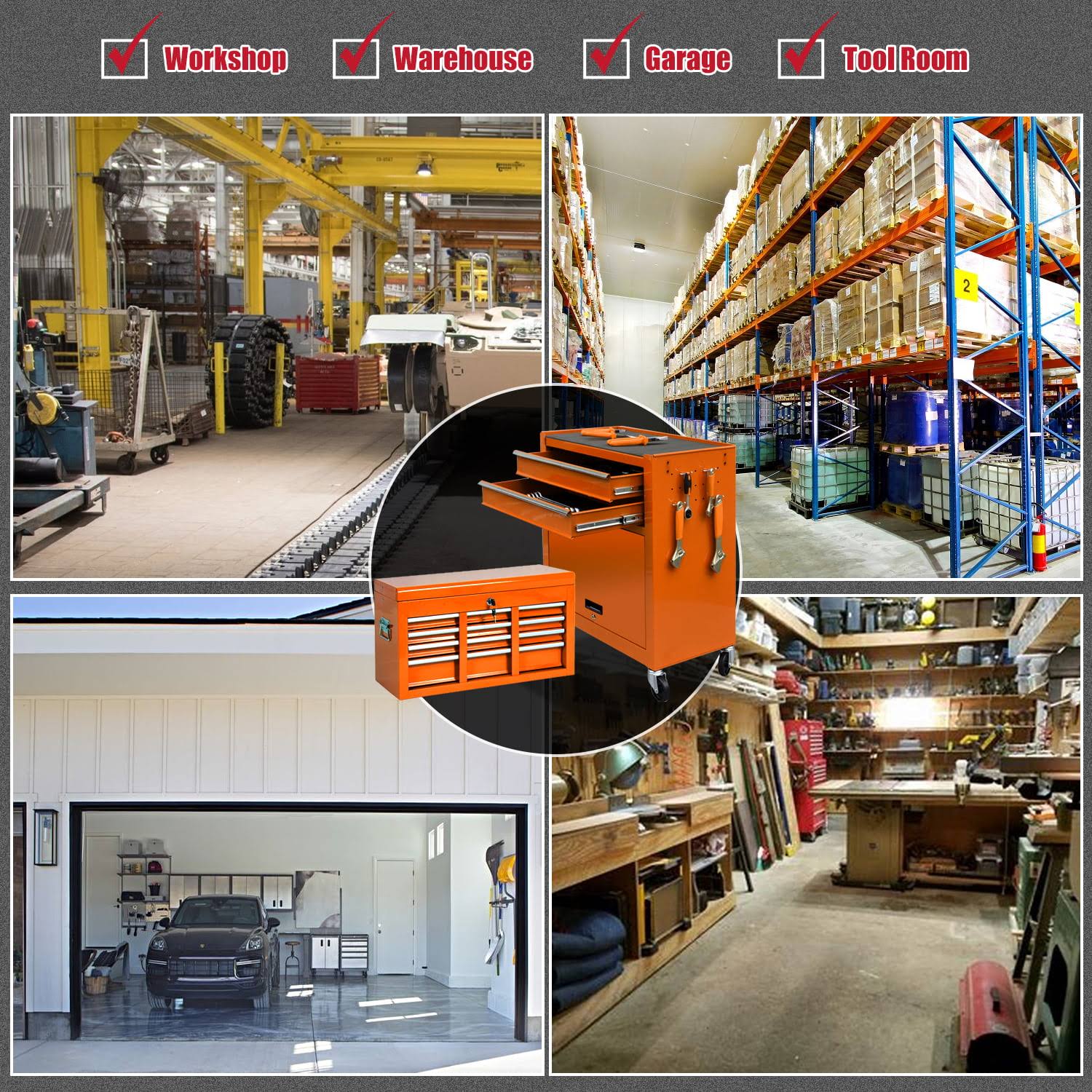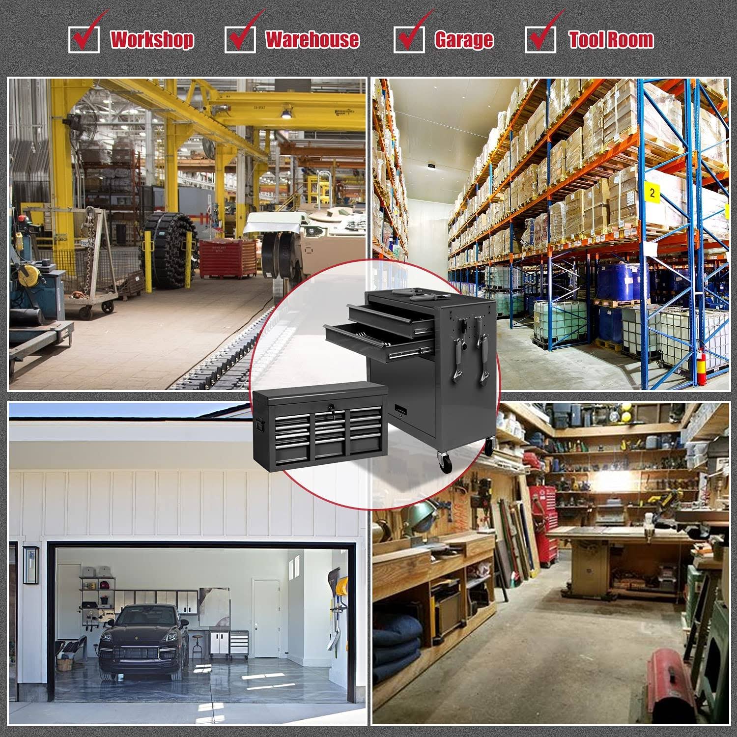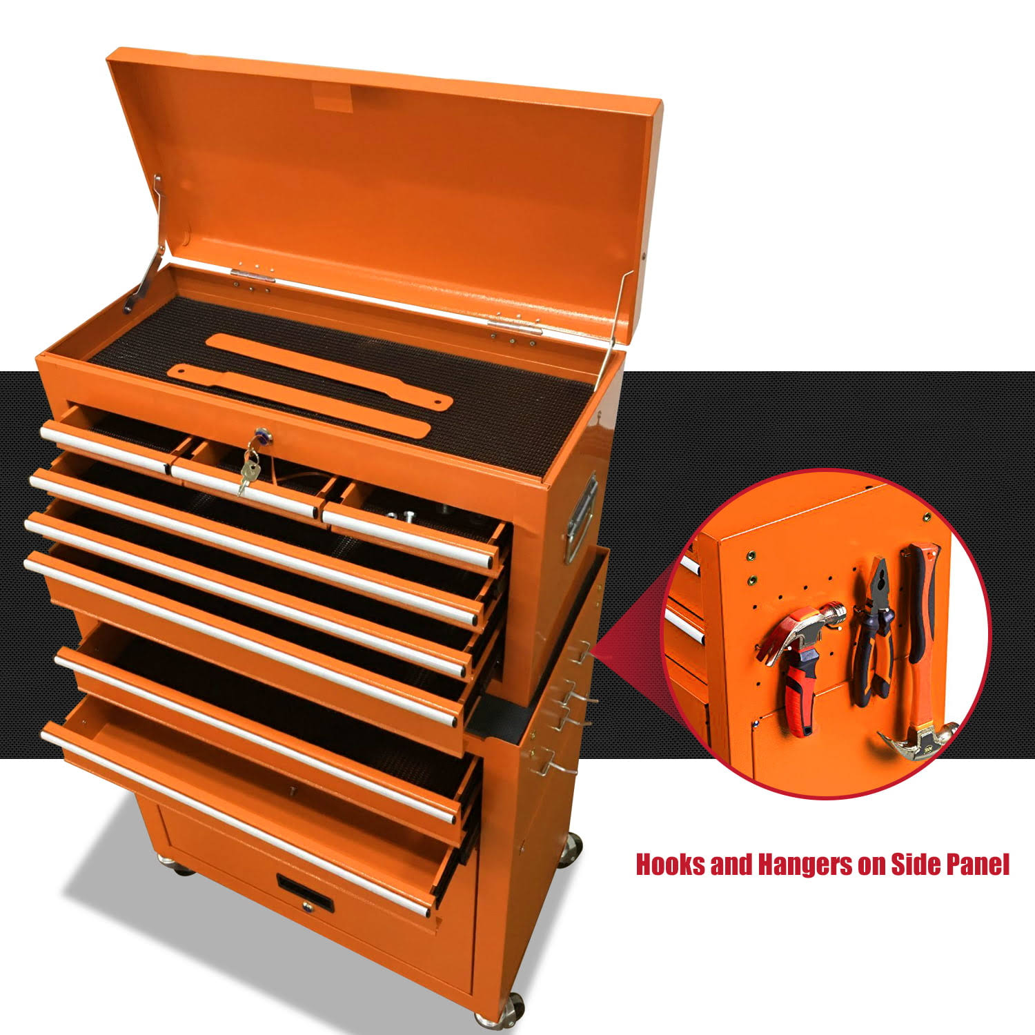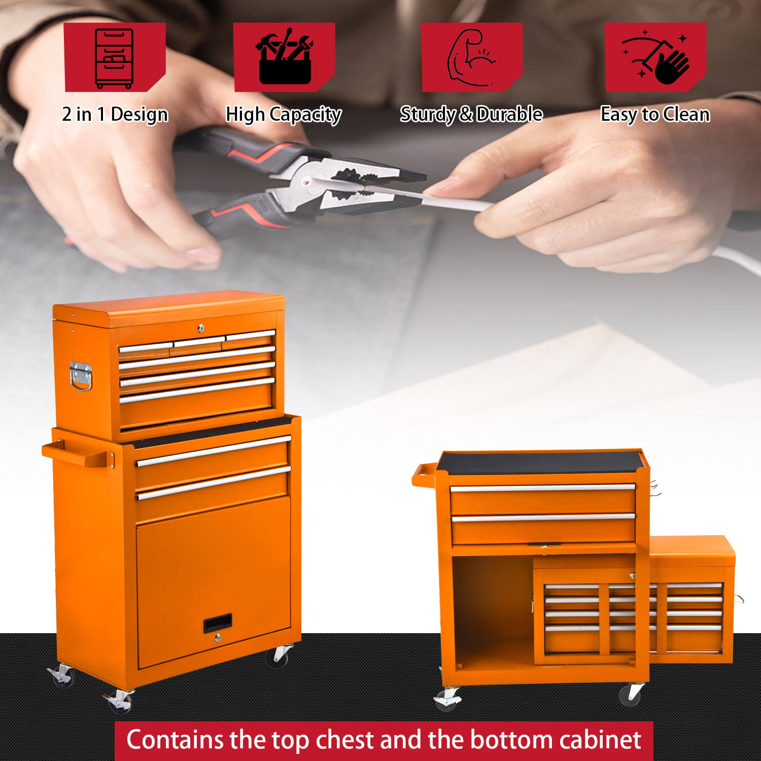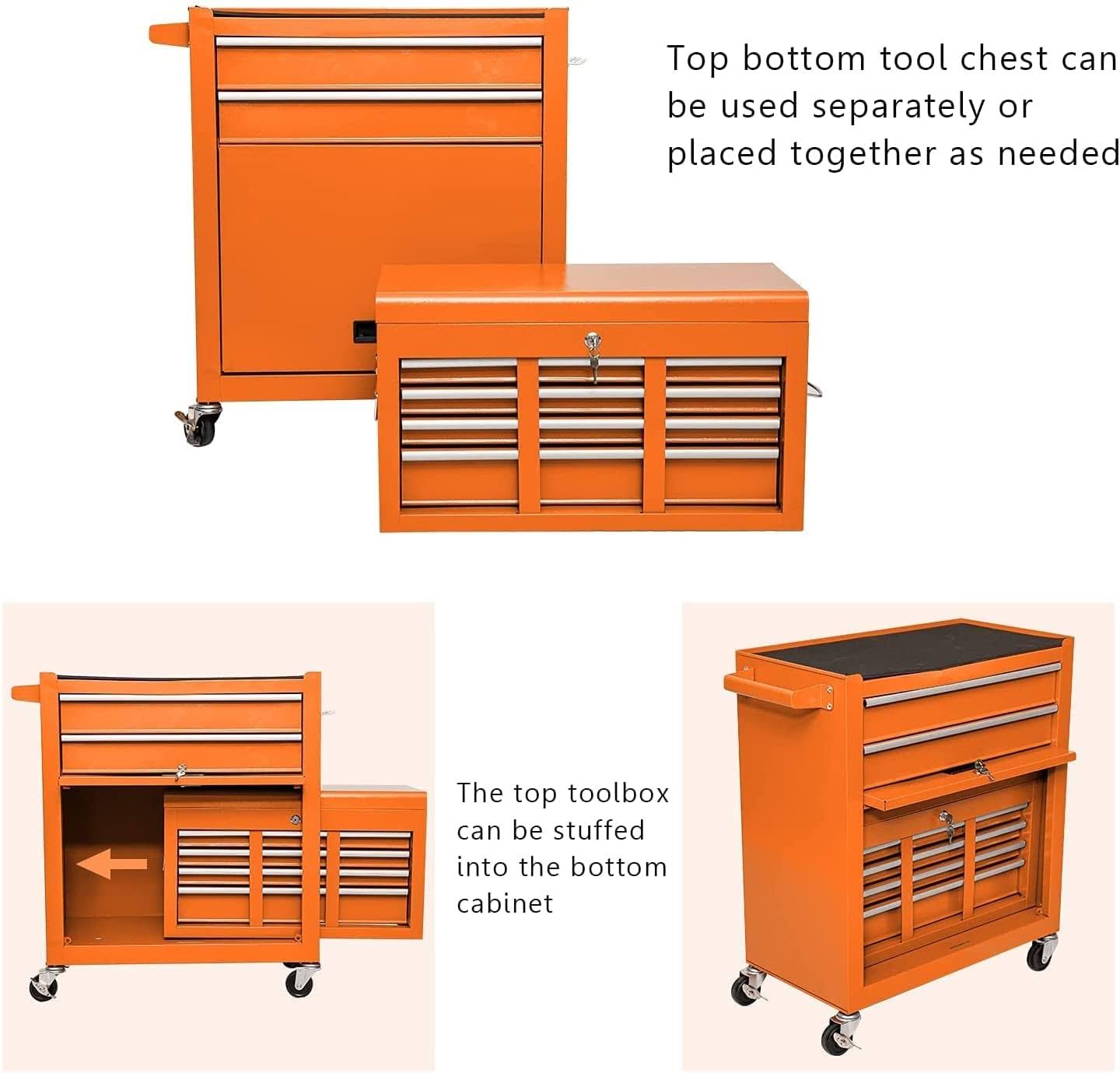 JD Trading 8-Drawer Rolling Tool Chest 2 in 1 High Capacity Tool Box Detachable Organizer Tool Storage Cabinet with 4 Wheels & Lockable Lined