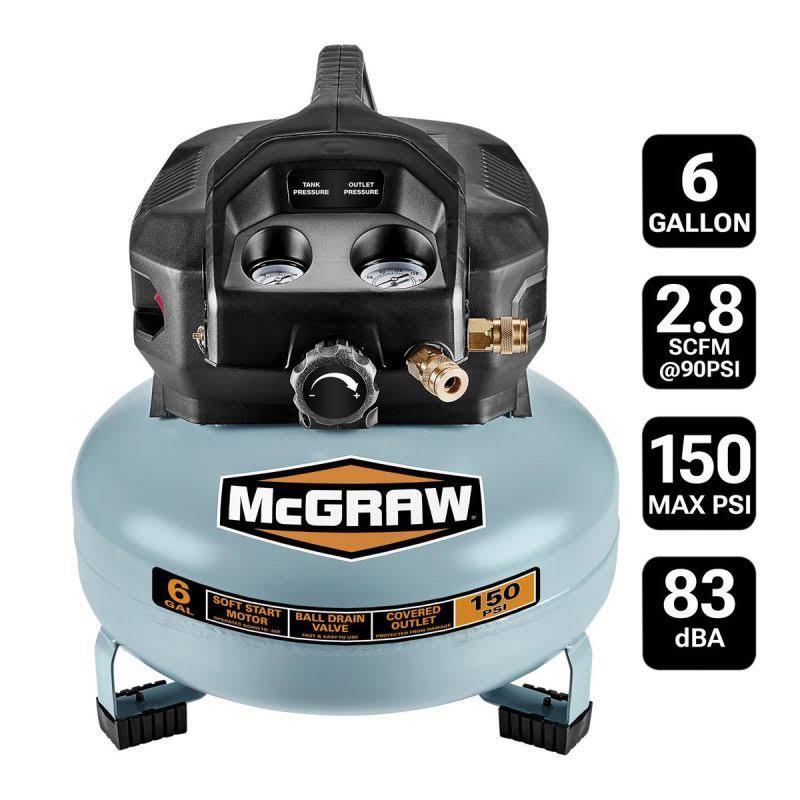 Mcgraw 3 Gallon 1/3 HP 110 PSI Oil-Free Pancake Air Compressor 57567