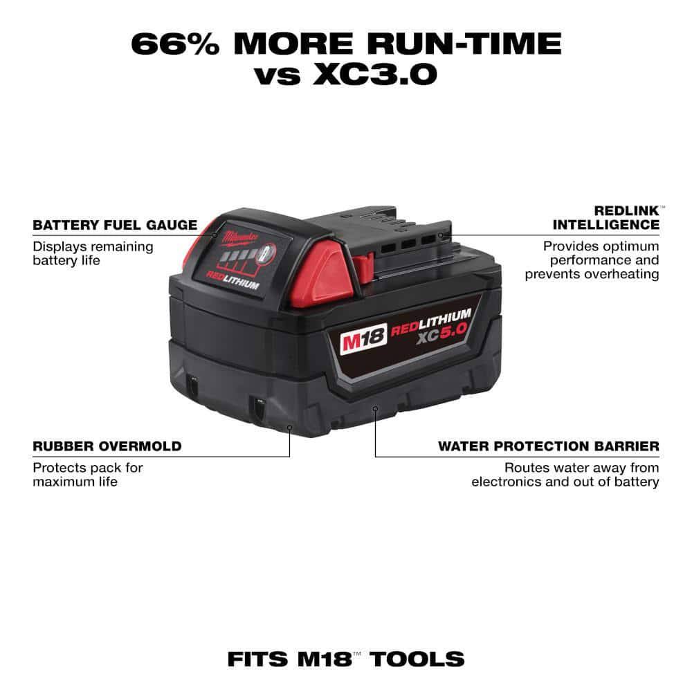 Milwaukee M18 Fuel Gen-2 18-Volt Lithium-Ion Brushless Cordless Mid Torque 1/2 in. Impact Wrench F Ring w/5.0Ah Starter Kit