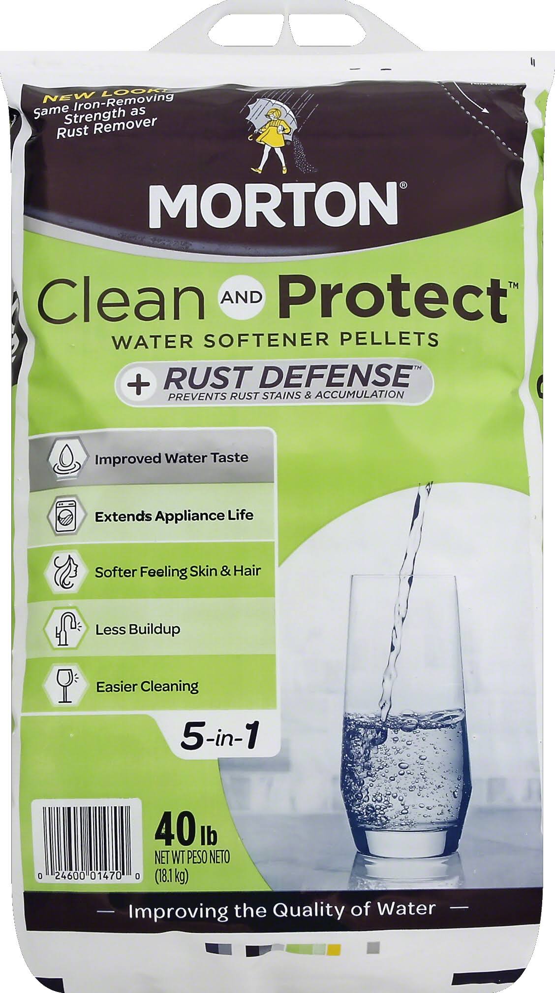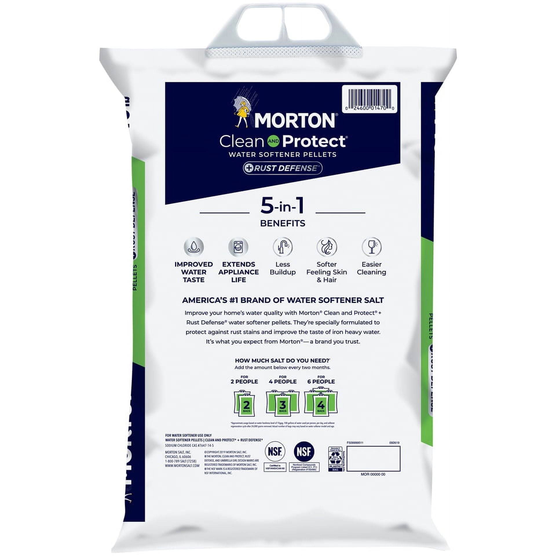 Morton Clean and Protect Water Softening Pellets, +Rust Defense- 40 lb