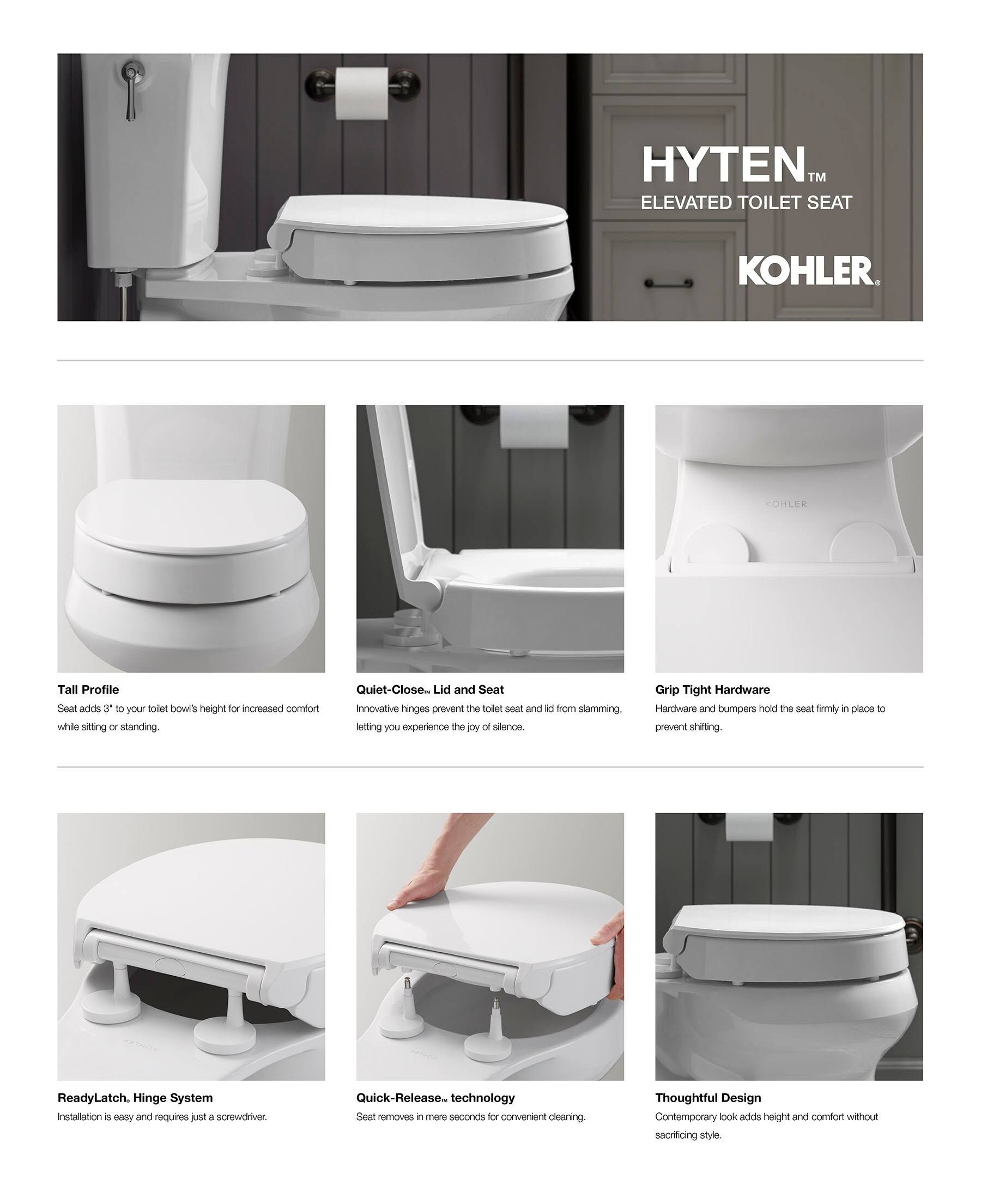 Kohler K-25875-0 Hyten Elevated Quiet-Close Elongated Toilet Seat- White