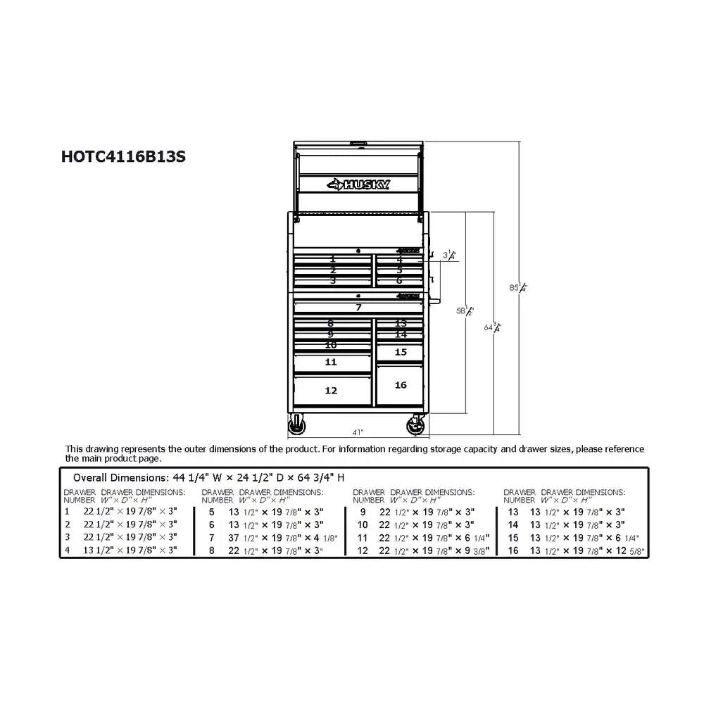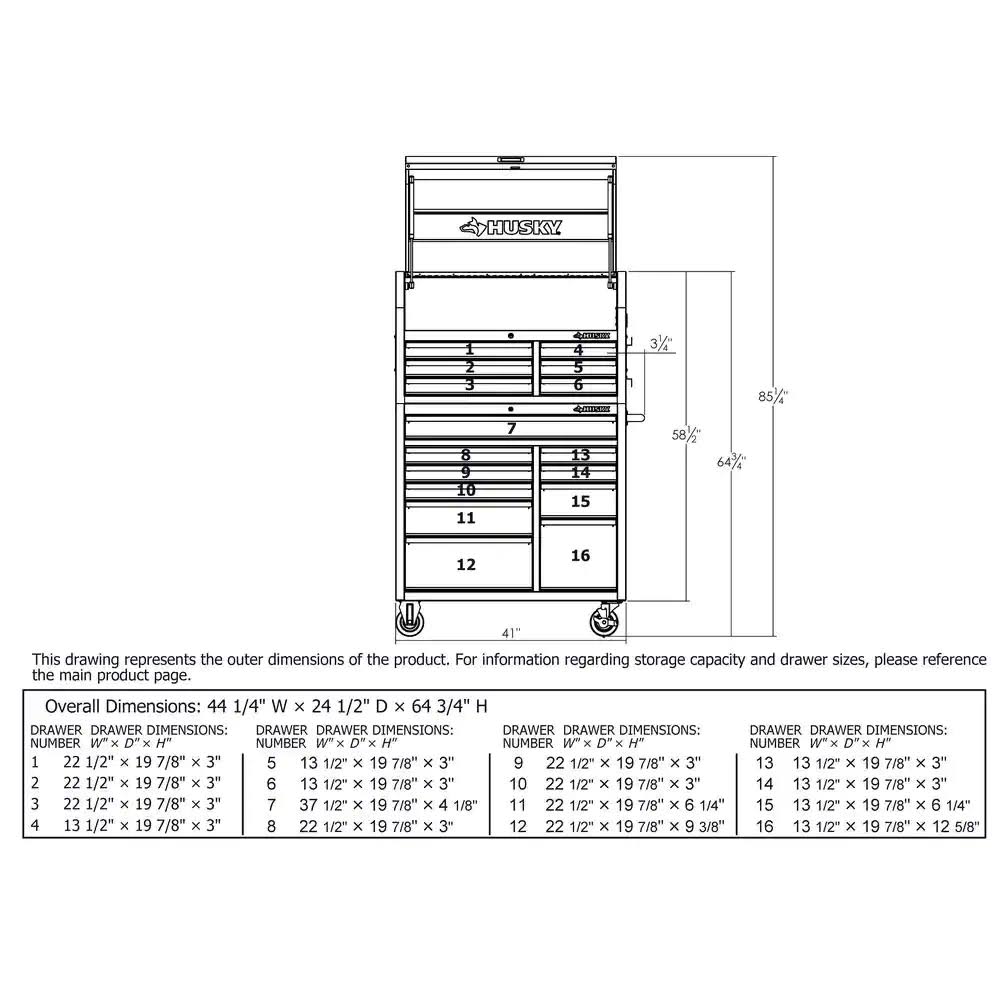 Husky 41 in. 16-Drawer Tool Chest and Cabinet Combo in Gloss Black