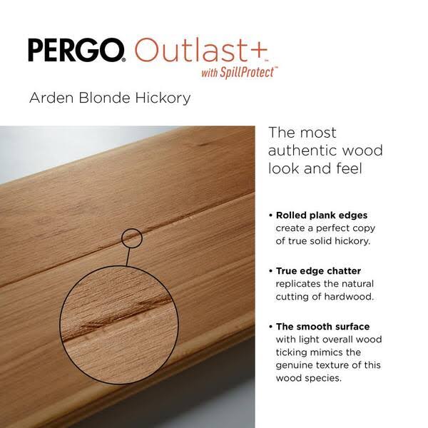 Pergo Outlast+ Arden Blonde Hickory 12 mm T x 6.1 in. W Waterproof Laminate Wood Flooring (16.1 sqft/case)