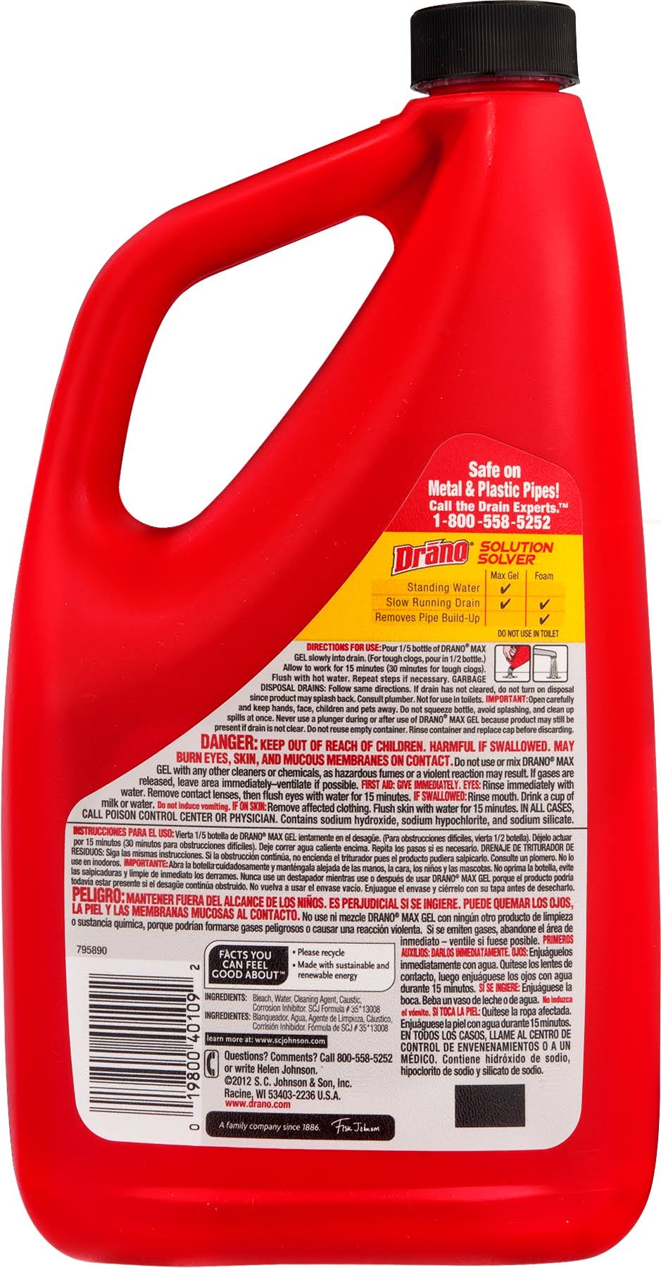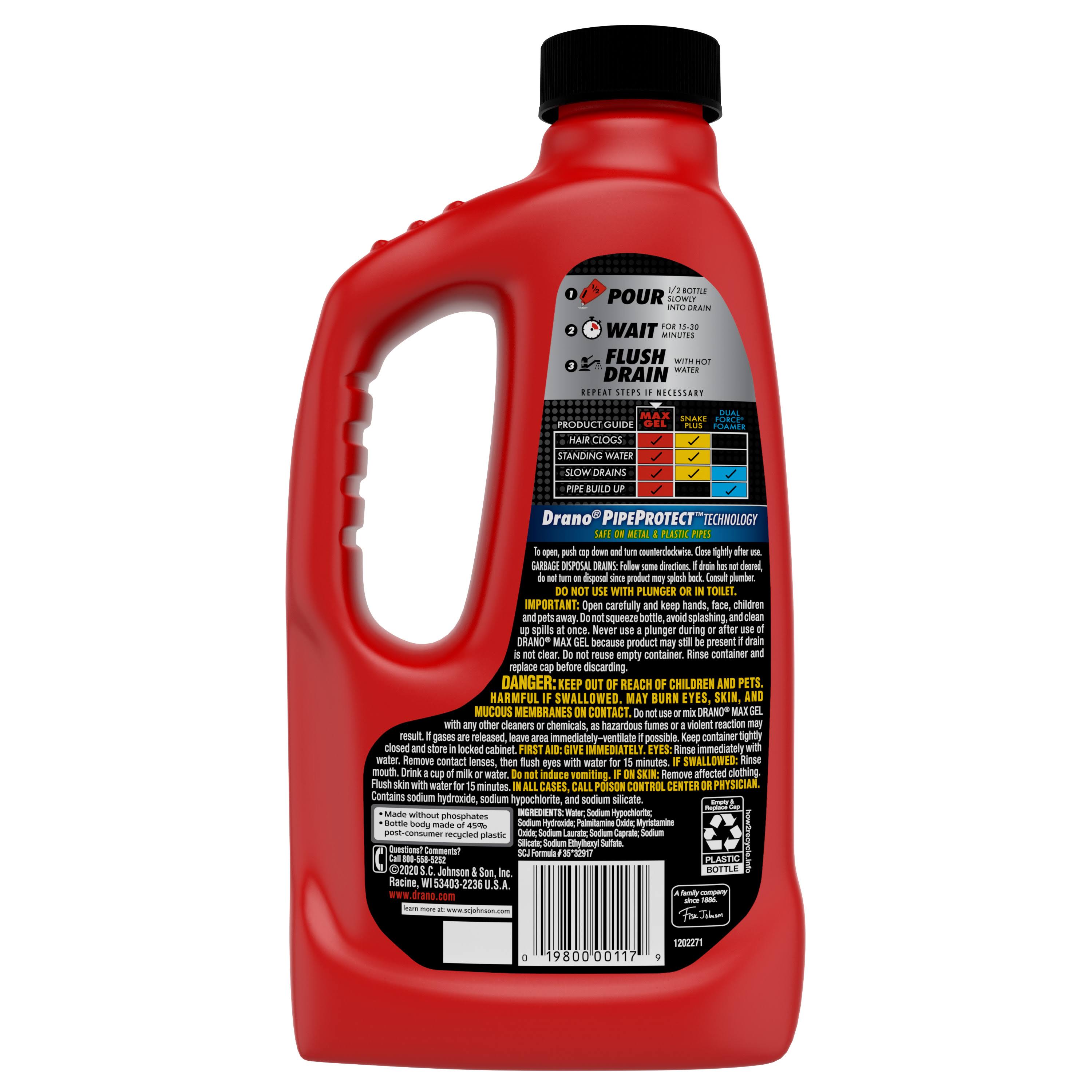 Drano Commercial Line Clog Remover, Max Gel, Pro Strength- 42 fl oz