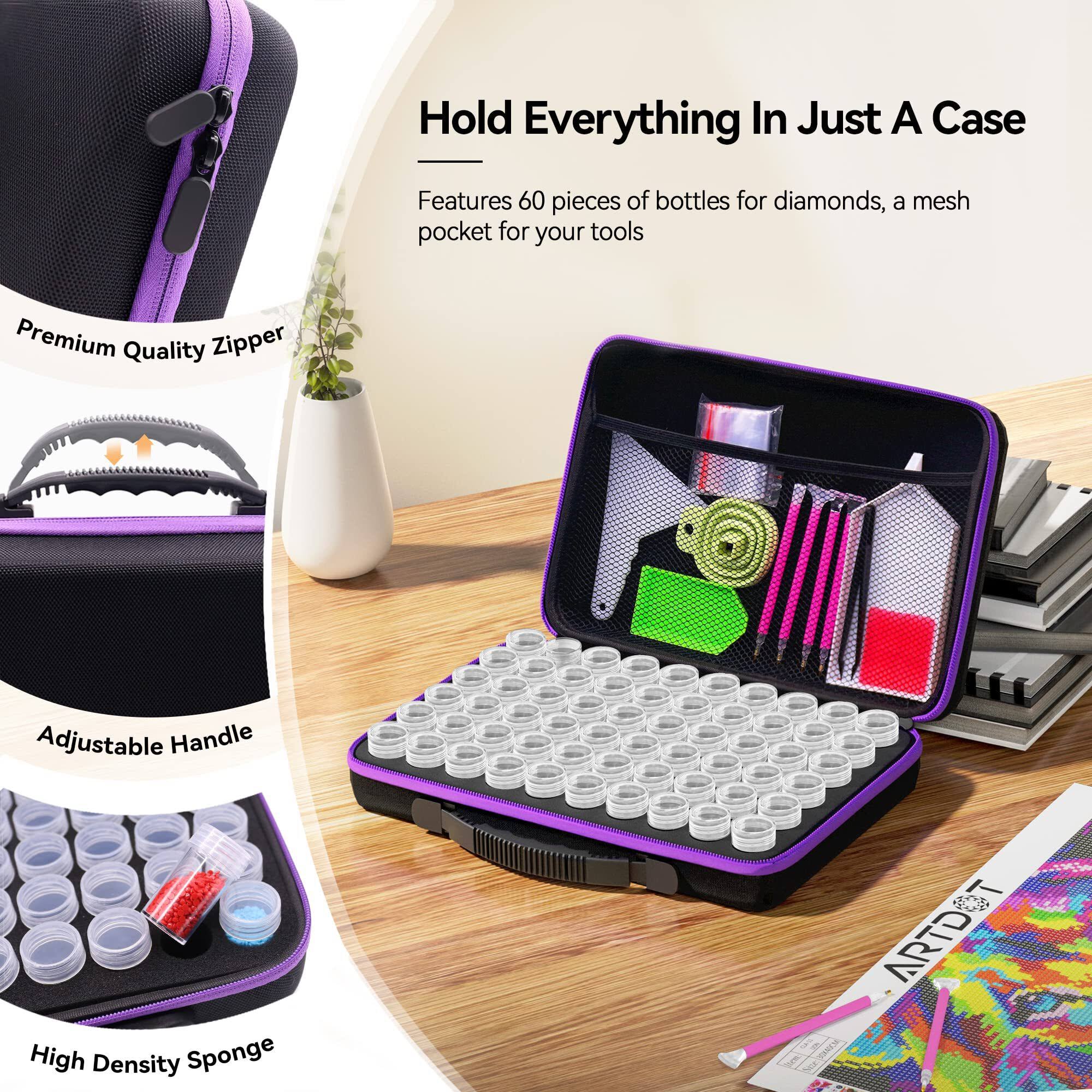 ARTDOT Diamond Painting Storage Containers, 60 Slots Diamond Painting Shockproof