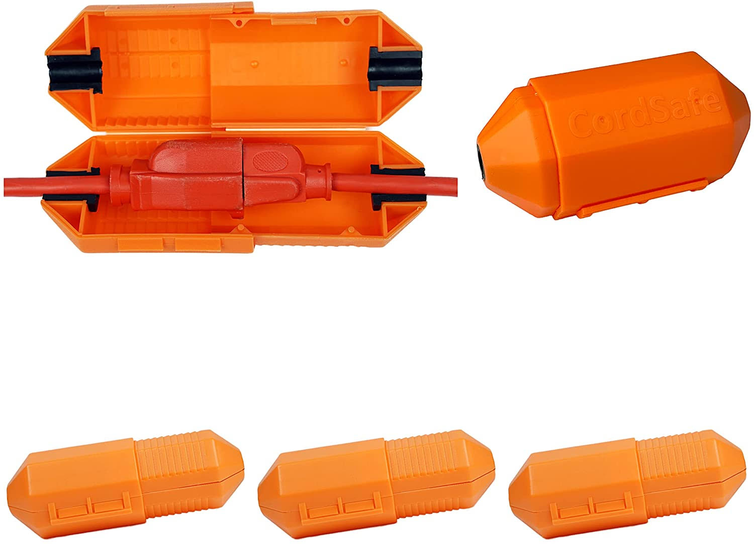 Cordsafe Extension Cord Plug Protector & Safety Cover Water-Resistant Outdoor Prevent Tripping Keep Cords Connected Orange 3-Pack 2665-3