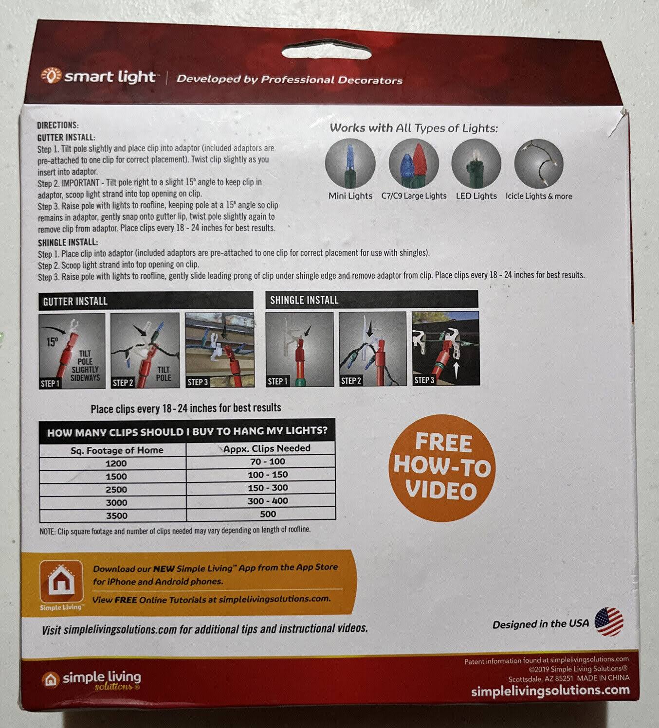 Simple Living Ladderless Light Clips 50ct Includes 2 Adapters Gutters & Shingles, Size: One Size