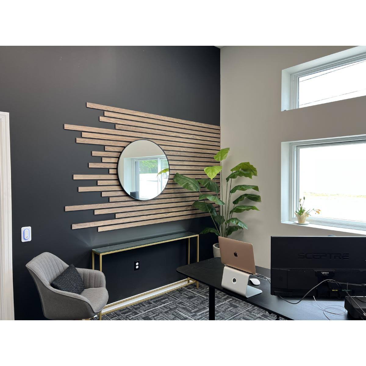 Ekena Millwork SWW84X48X0375RO 47"H x 3/8"T Adjustable Wood Slat Wall Panel Kit w/ 1"W Slats, Red Oak (Contains 42 Slats)