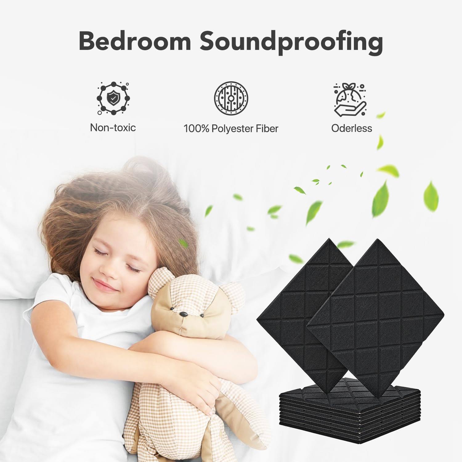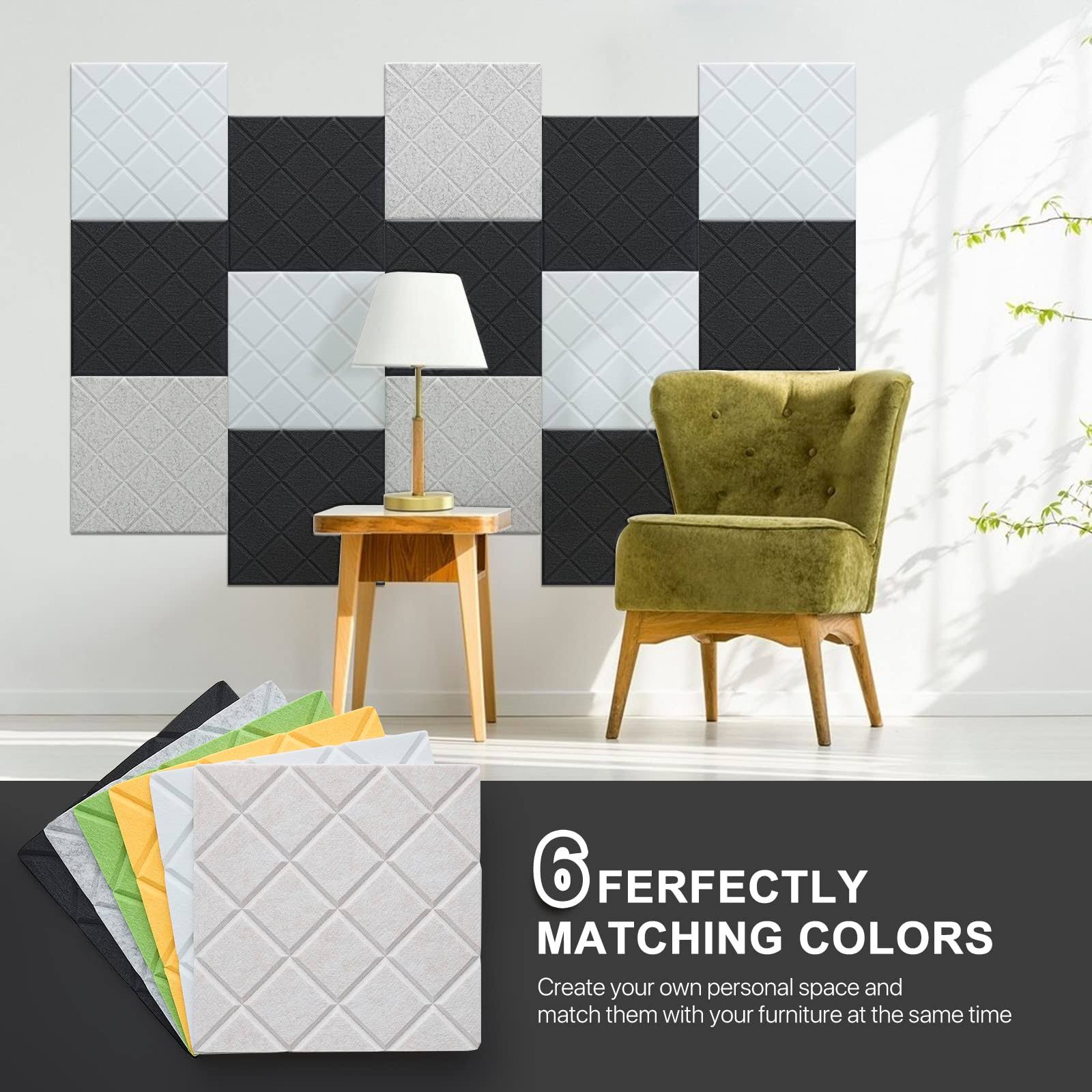 Soundproof Wall Panels, Kuchoow 12 Pack Noise Cancelling Wall Panels, Self Adhesive Sound Absorbing Panels, Acoustic Panels Sound Dampening Panels for