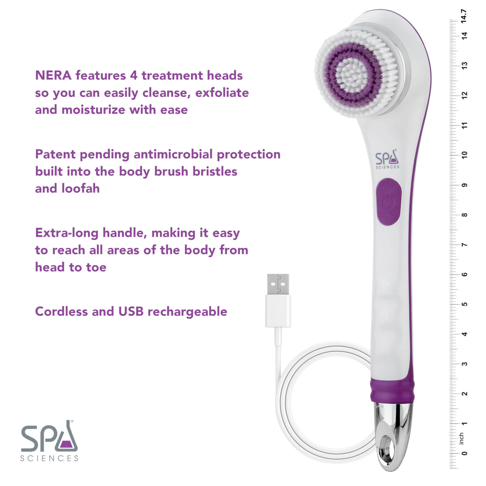 Spa Sciences Nera- 3-in-1 Shower Body Brush with USB