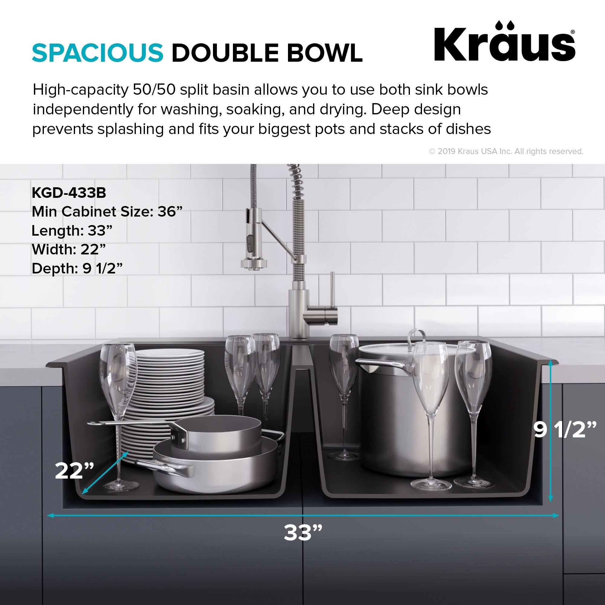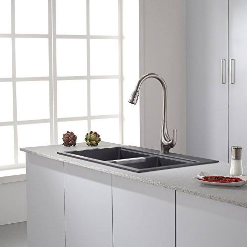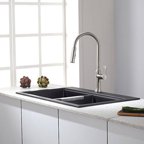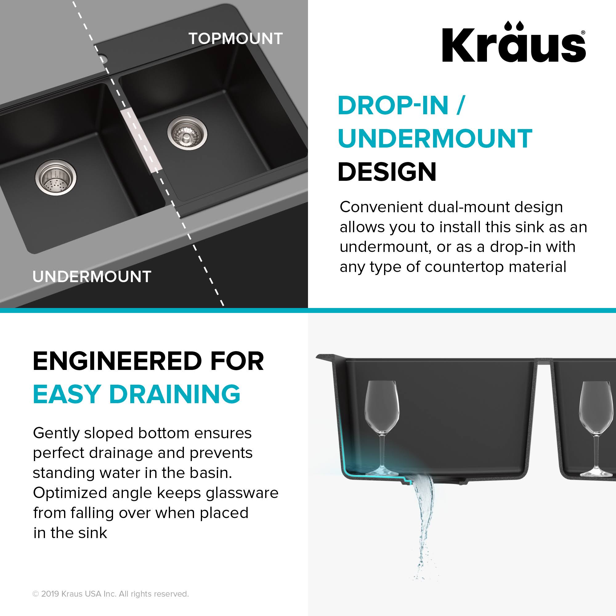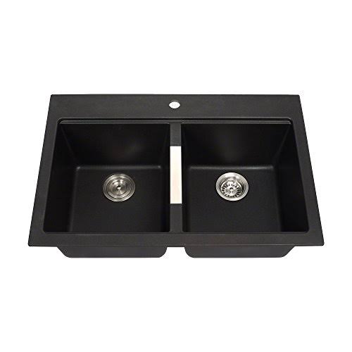 Kraus 33" Dual Mount 50/50 Double Bowl Black Onyx Granite Kitchen Sink