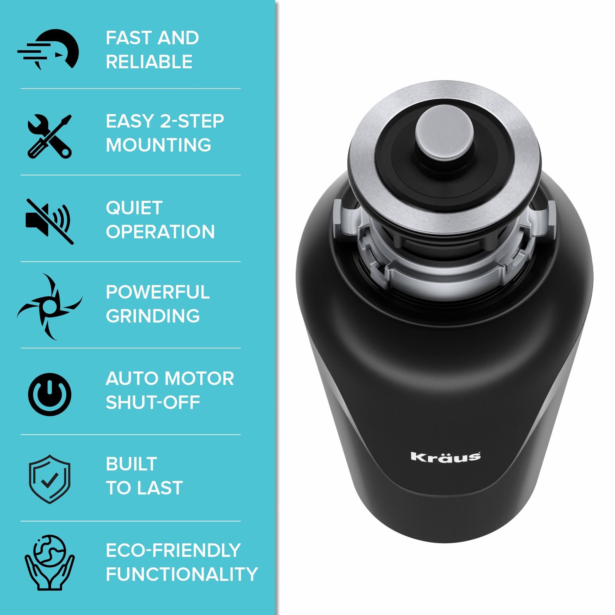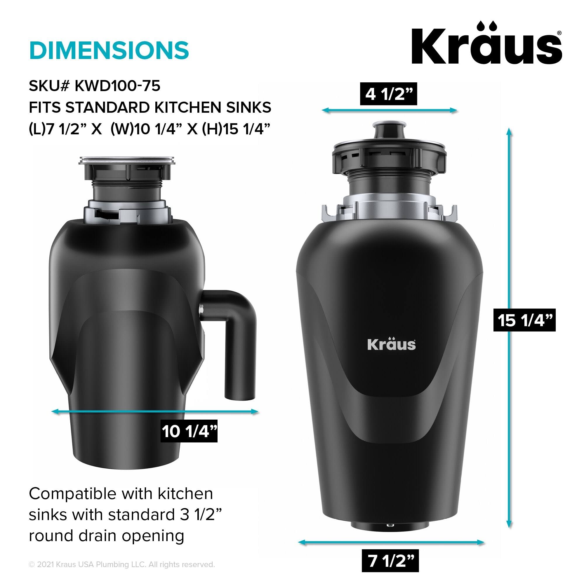 Kraus Quarza 33 inch Dual Mount Double Bowl Kitchen Sink with WasteGuard Garbage Disposal, Black Onyx KGD-433B-100-75MB