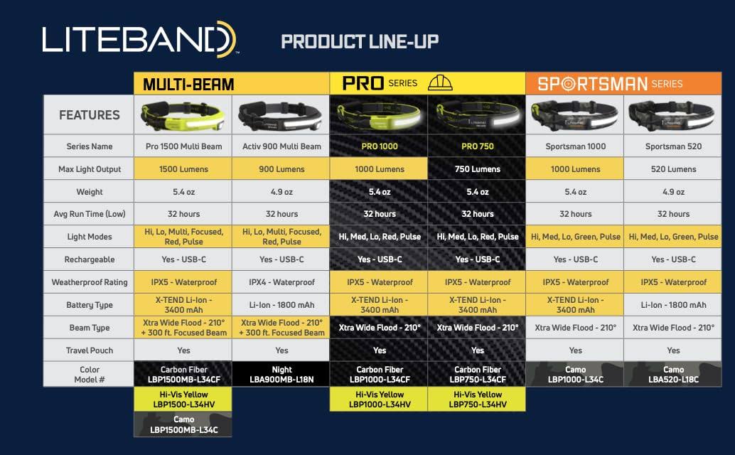 Liteband Pro 1500 Multi-Beam LED Headlamp- Carbon Fiber