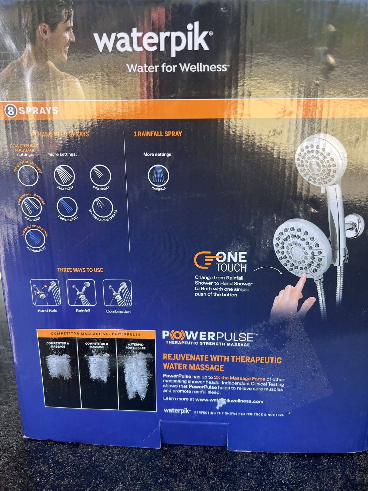 Waterpik XPA-133E/763ME 8-Spray Patterns with 1.8 GPM 6.25 in. Wall Mount Dual Shower Head and Handheld Shower Head in Chrome