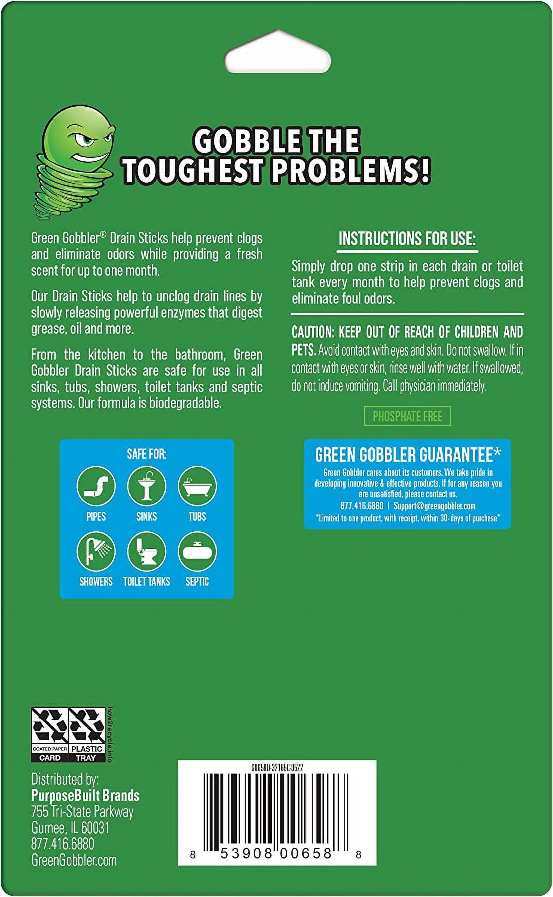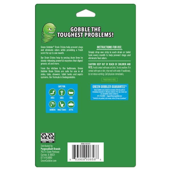 Green Gobbler Bio-Flow Drain Strips 24 | Cleaner & Deodorizer Sticks