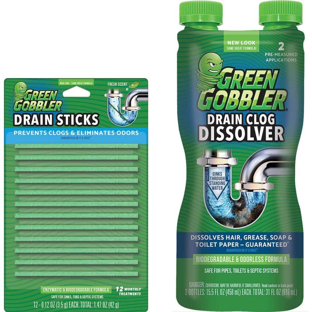 Green Gobbler Bio-Flow Drain Cleaning and Deodorizing Strips with 31 oz. Drain and Toilet Clog Dissolver