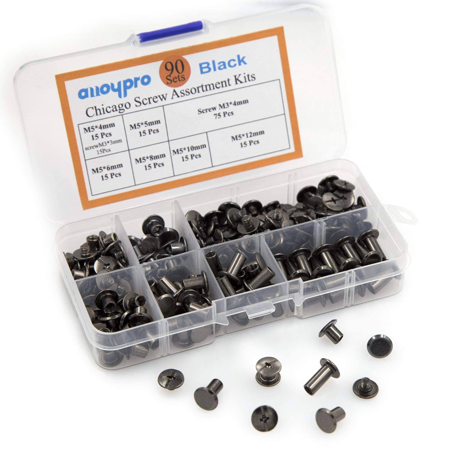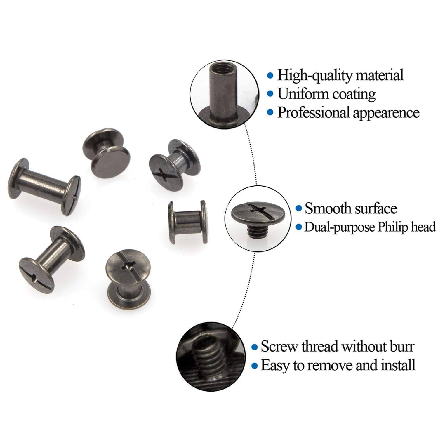 Alloypro Gun Metal Chicago Binding Screws Assorted Kit Nail Rivet Chicago Button DIY Leather Decoration Bookbinding Round Flat Head Stud Screw (