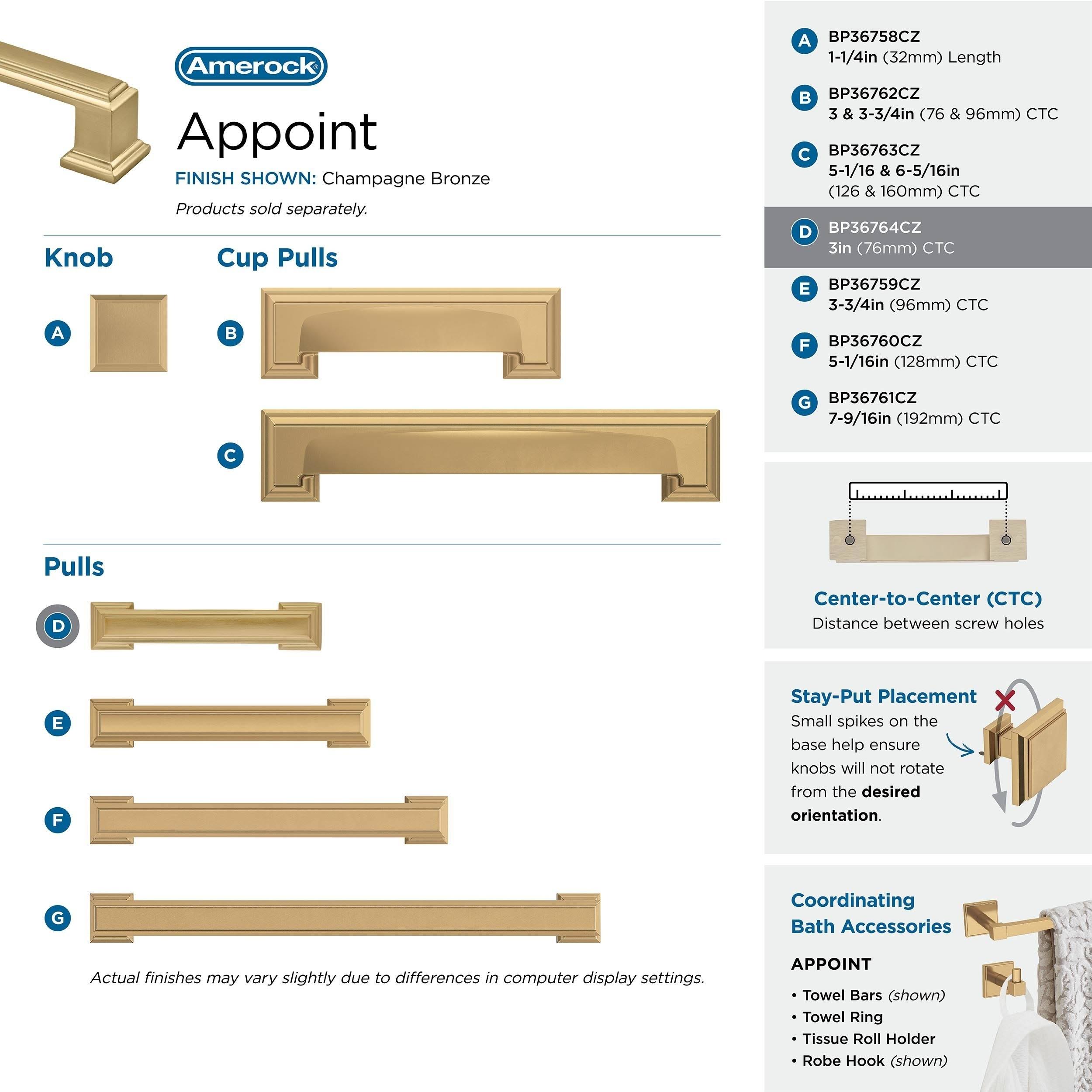 Amerock BP37360CZ Appoint 6-5/16 in (160 mm) Center-to-Center Champagne Bronze Cabinet Pull