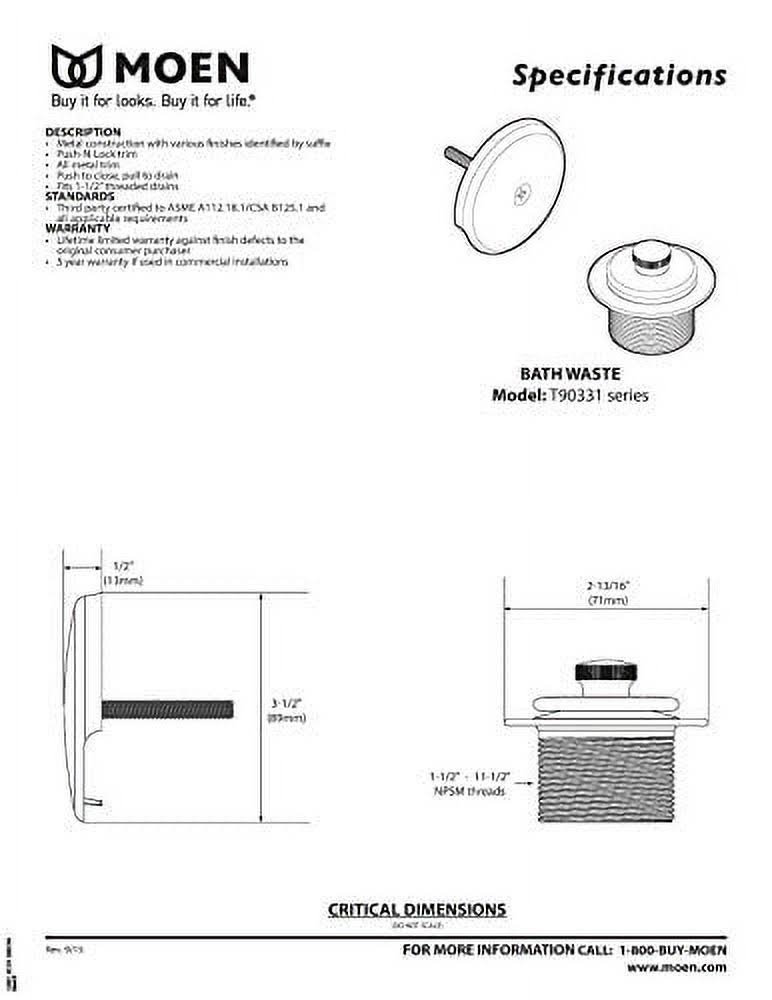Moen T90331BN Brushed Nickel Tub/Shower Drain Covers