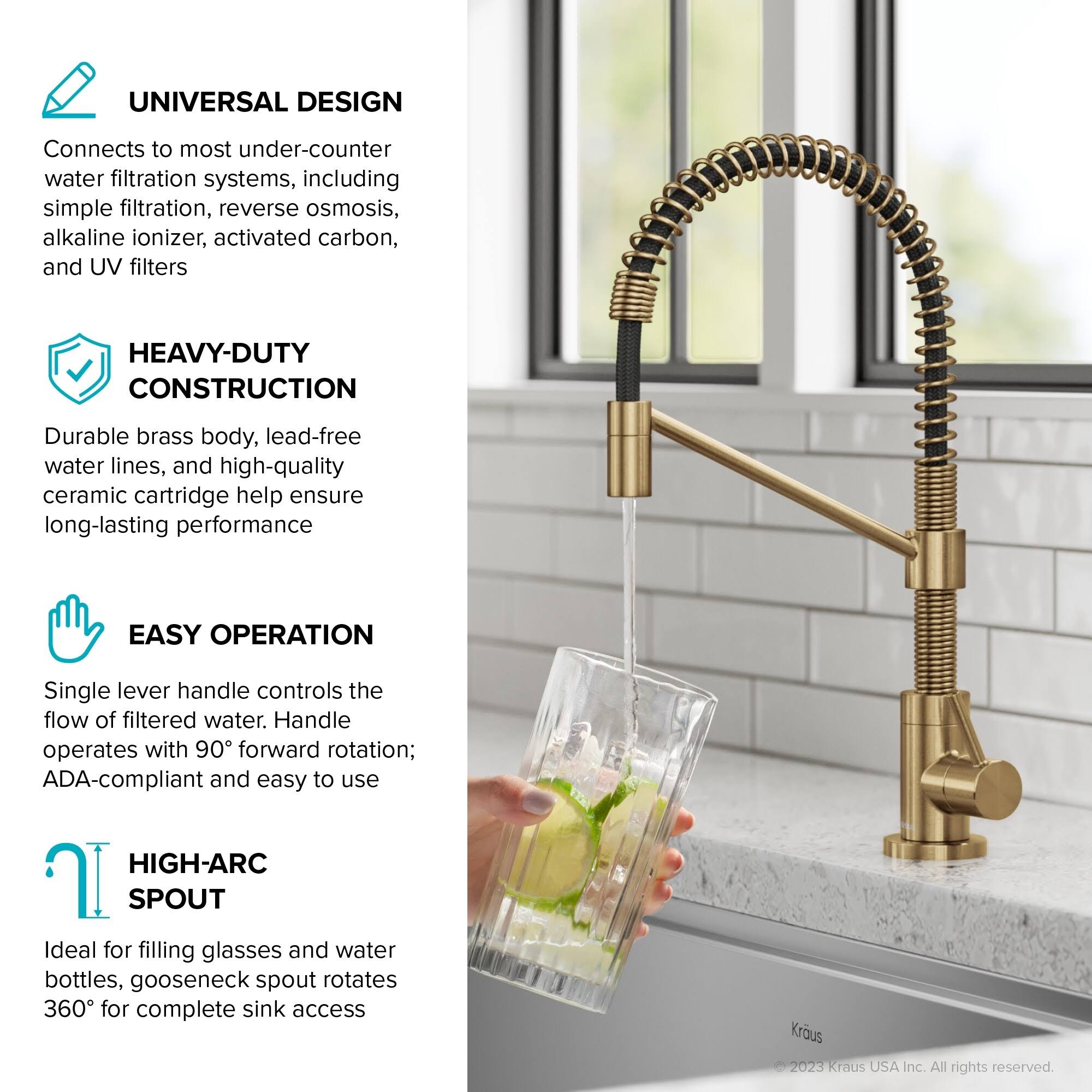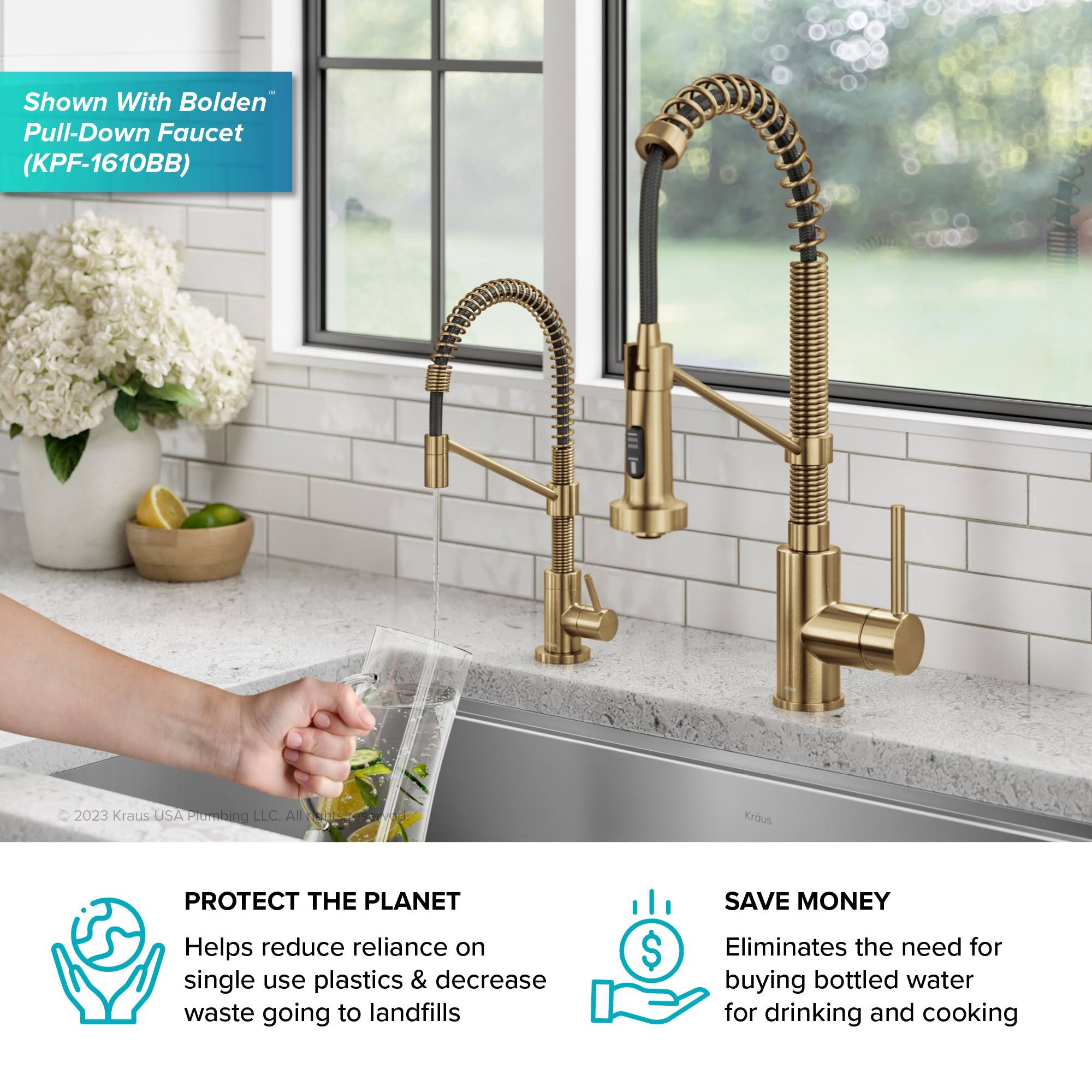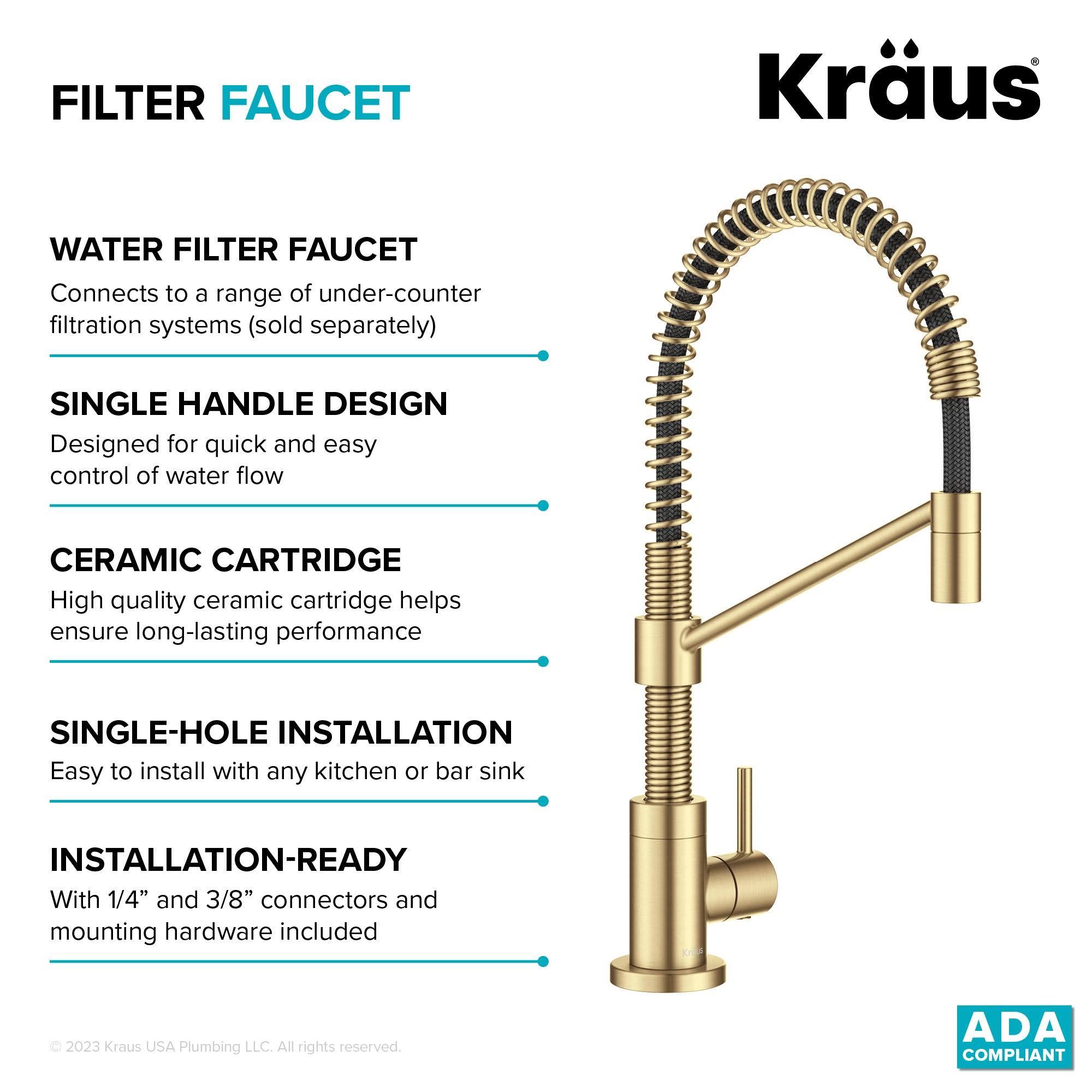 Kraus FF-104BB Bolden Single Handle Drinking Water Filter Faucet for Reverse Osmosis or Water Filtration System Brushed Brass
