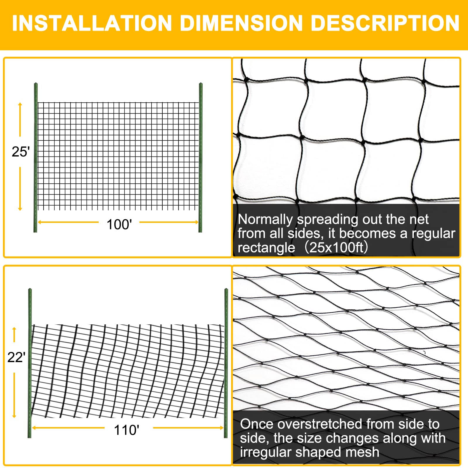 Bird Netting 25'x100' with 2.4" Square Mesh Garden Netting Bird Net for Chicken Coop, Poultry Netting Heavy Duty Nylon Netting for Garden, Aviary,