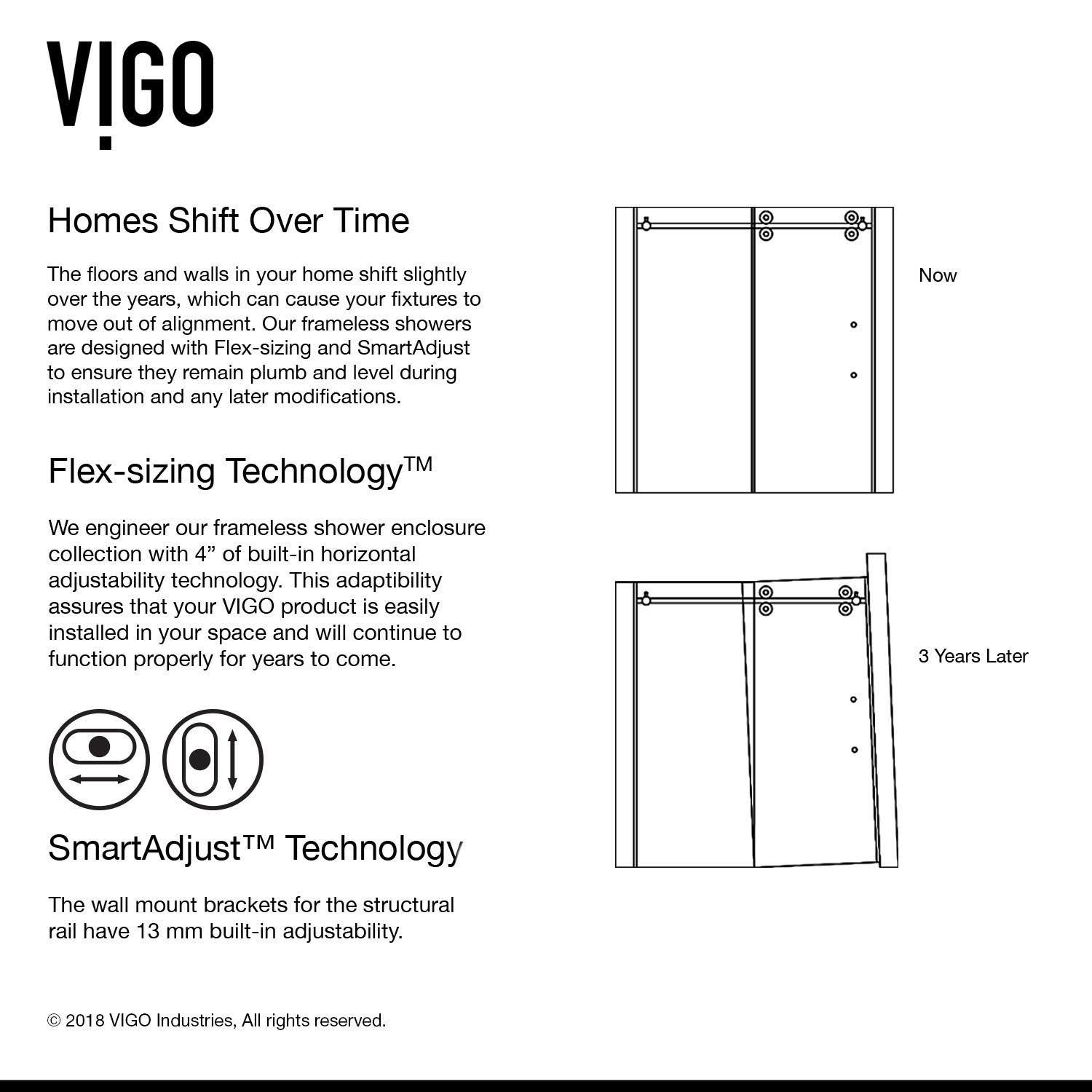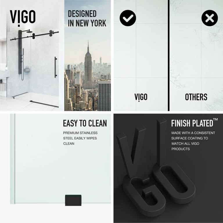 Vigo VG6041MBCL6074 Elan Adjustable Frameless Sliding Shower Door with Matte Black Hardware