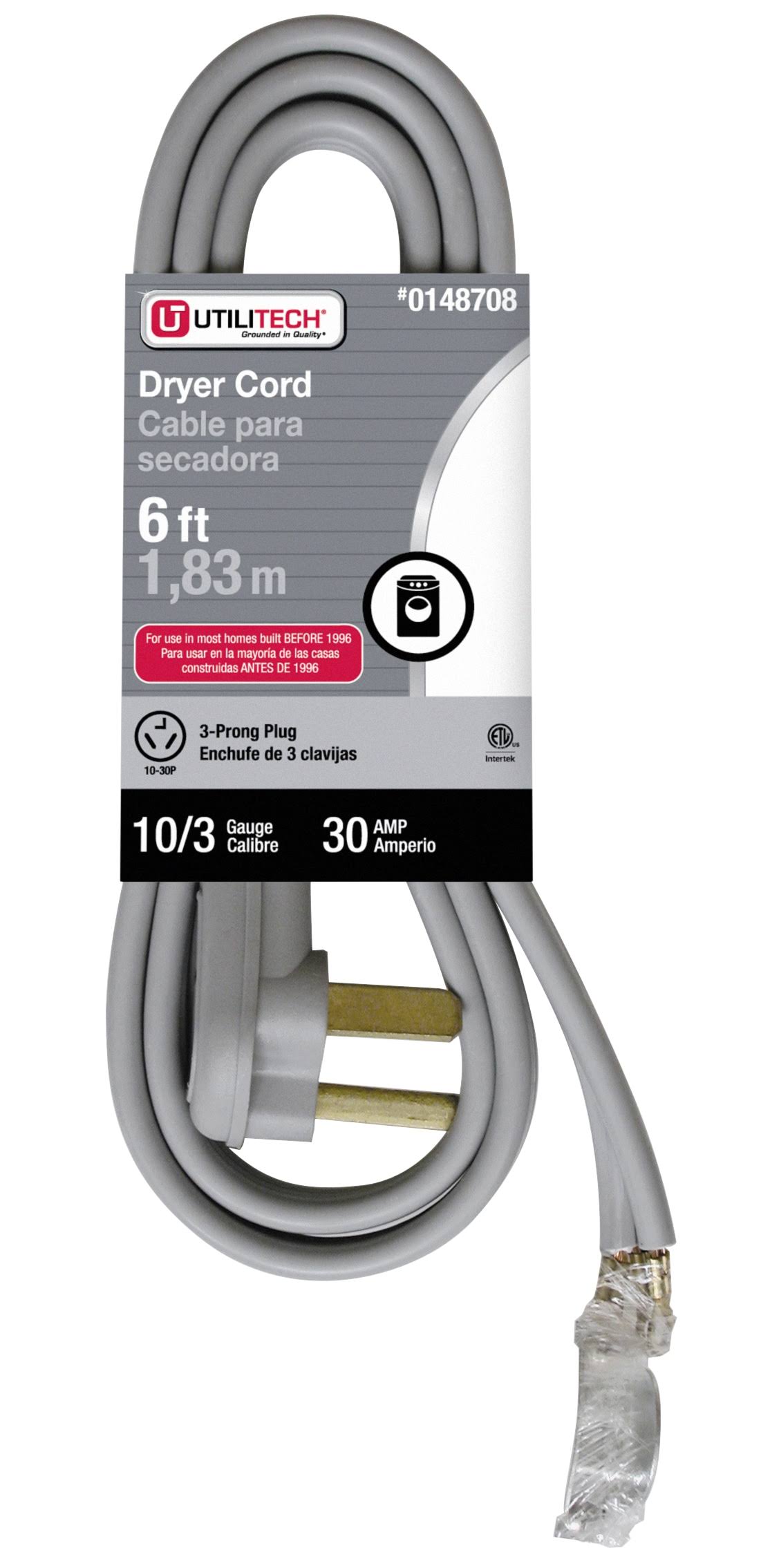 Utilitech 6-ft 3-Prong Gray Dryer Appliance Power Cord | UTD100306