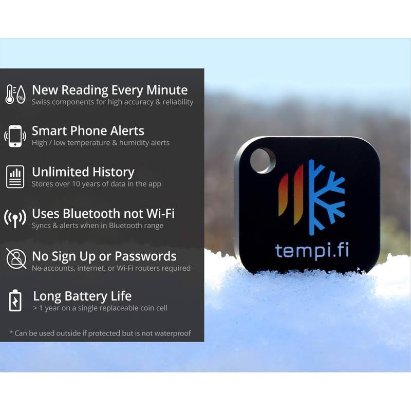 Tempifi Mini Wireless Temperature and Humidity Sensor- Developed in The USA- 247 Data Logger with Alarm- Bluetooth Smart Ther